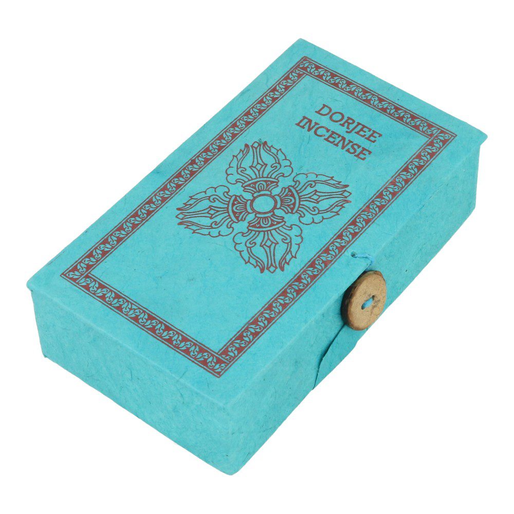 Ambachtelijk gemaakte dorjee wierook uit Nepal. Je ontvangt een fraai doosje van handgeschept papier met ambachtelijk gemaakte wierookstokjes met de geur van dorjee van het merk Stupa. In het doosje zit ook een houdertje voor de wierookstokjes.