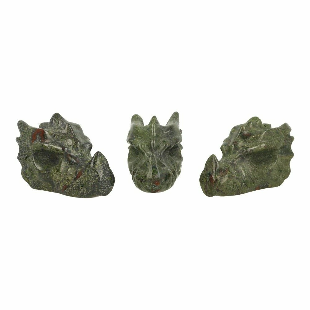 Drakenbloed steen wordt ook wel drakensteen of drakenbloed jaspis genoemd en heet in het Engels Dragon Stone. Het is een unieke steen van donkerrode vlekken in een groen basisgesteente. Deze donkere vlekken doen aan bloeddruppels denken, vandaar de naam.