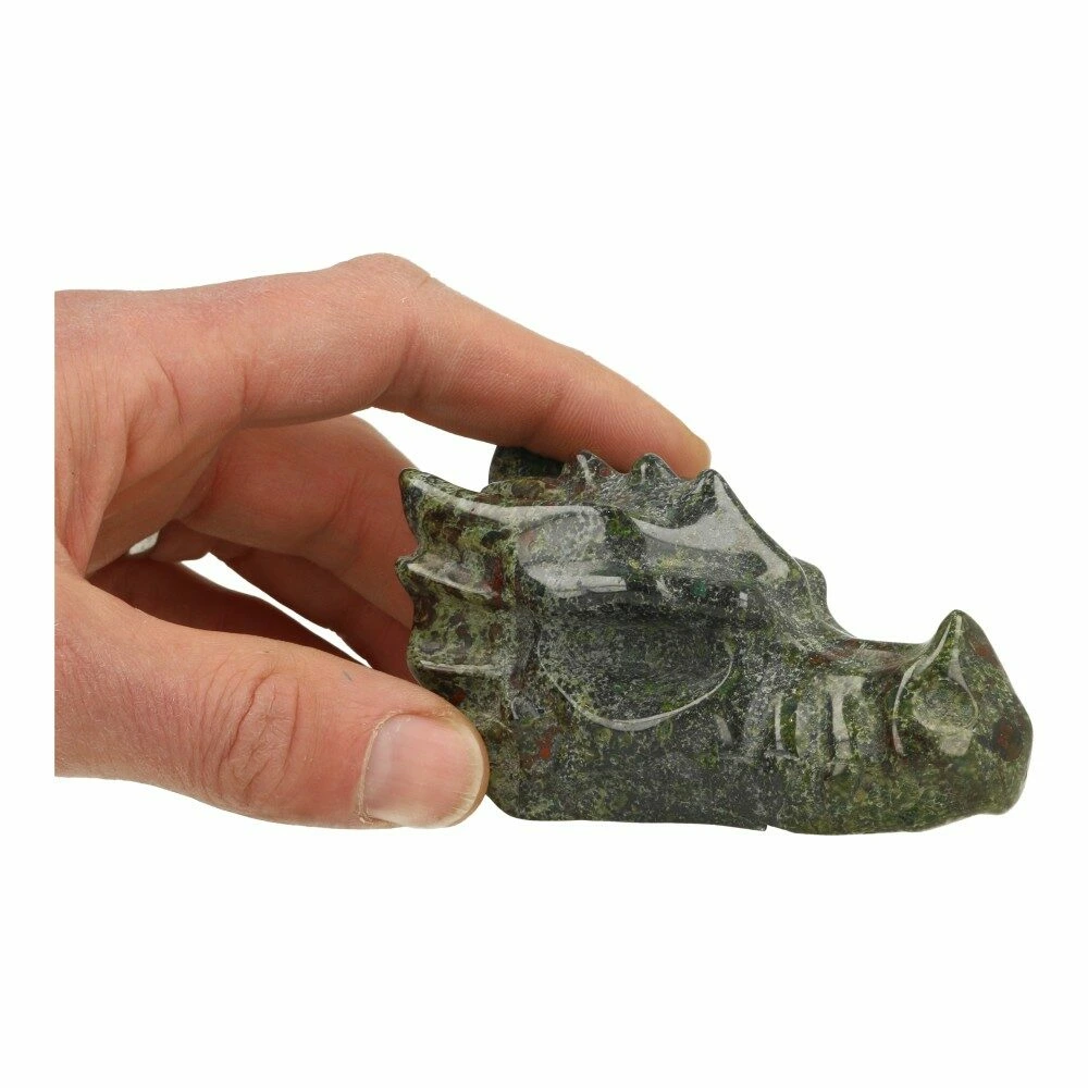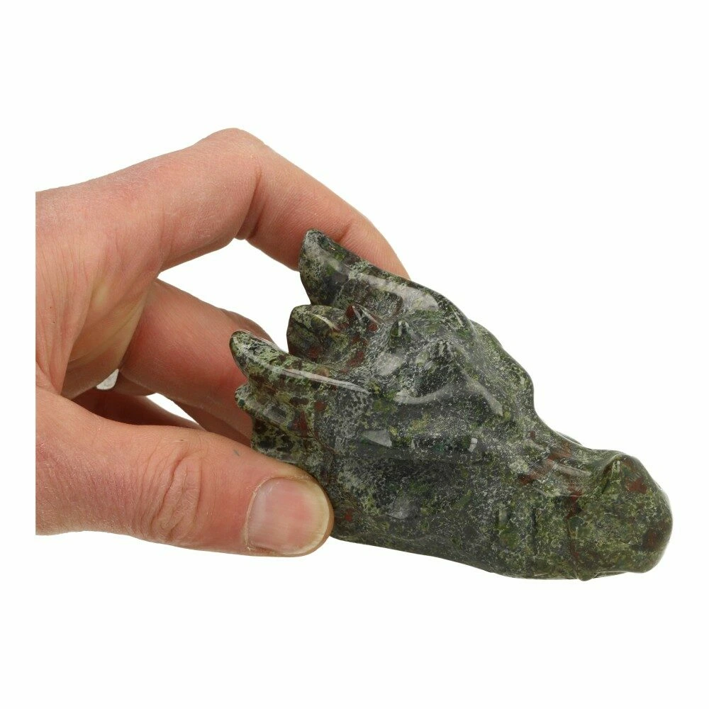Drakenbloed steen wordt ook wel drakensteen of drakenbloed jaspis genoemd en heet in het Engels Dragon Stone. Het is een unieke steen van donkerrode vlekken in een groen basisgesteente. Deze donkere vlekken doen aan bloeddruppels denken, vandaar de naam.