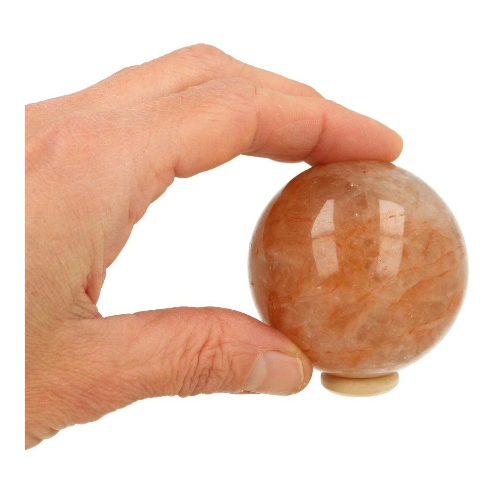 Mooi formaat golden healer bol met een diameter van 69mm in rode uitvoering. Je ontvangt de bol van de foto met een houten ringetje. We hebben meerdere bollen in voorraad, dus neem contact met ons op als je iets anders zoekt. De energie van deze bol is warm en uitnodigend.