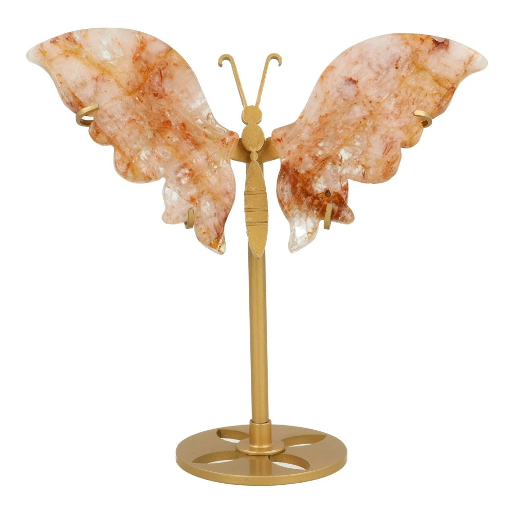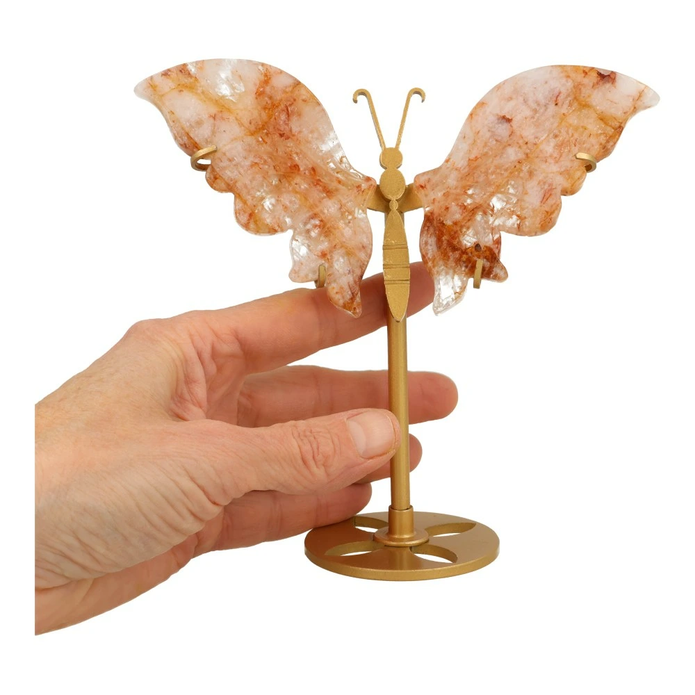 Mooie rode golden healer vlinder op goudkleurige standaard (nr.2). De afmeting van deze golden healer vlinder is ongeveer 15cm hoog en 15cm breed. Je ontvangt de golden healer vlinder van de foto’s, de vleugels staan los in de standaard. Rode golden healer wordt ook wel red healer genoemd.