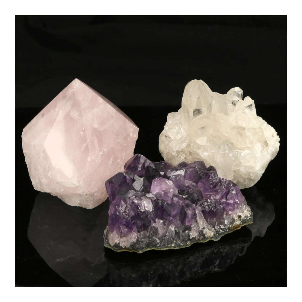 | Naam | Amethist, Bergkristal, Gouden driehoek, Rozenkwarts |