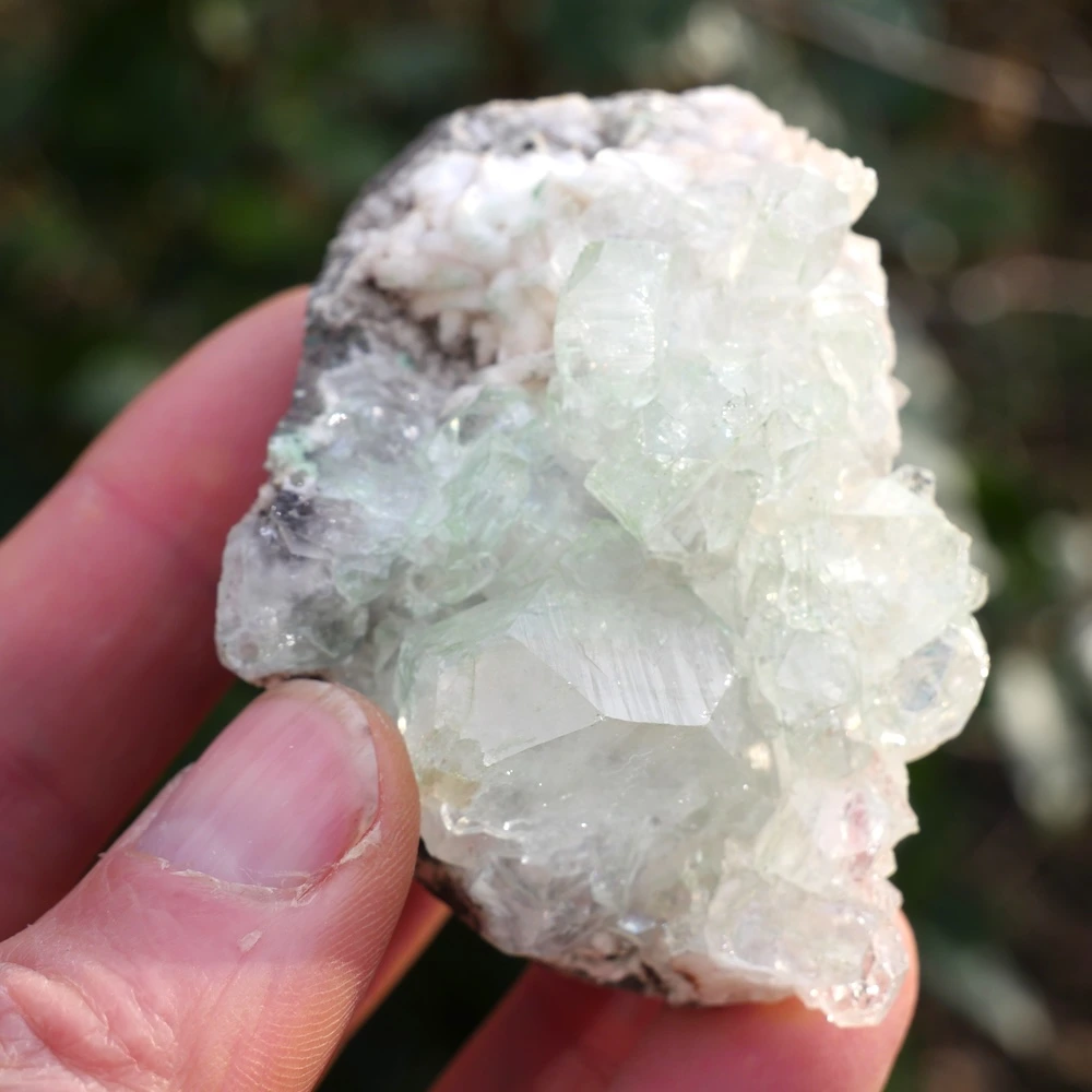 Mooi stukje met groene apofyliet kristallen. De afmeting van dit fraaie stukje is 7,5cm breed, 4,2 cm diep en 4,5cm hoog en komt uit India. Je ontvangt het groene apofyliet cluster van de foto.