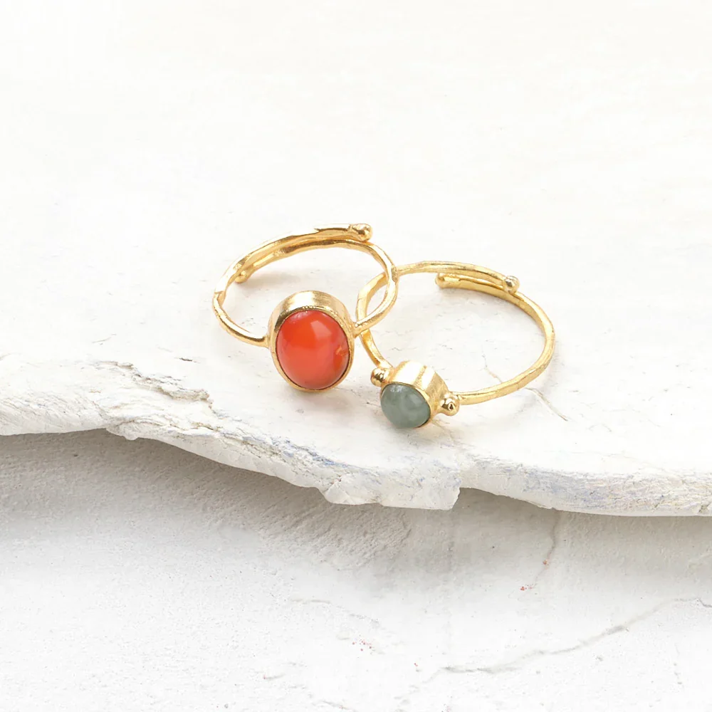 Deze Faithful Aventurijn Vergulde Ring van A Beautiful Story is gemaakt van verguld messing en voorzien van een aventurijn edelsteen. De binnenmaat van de verstelbare ring is 16 millimeter.