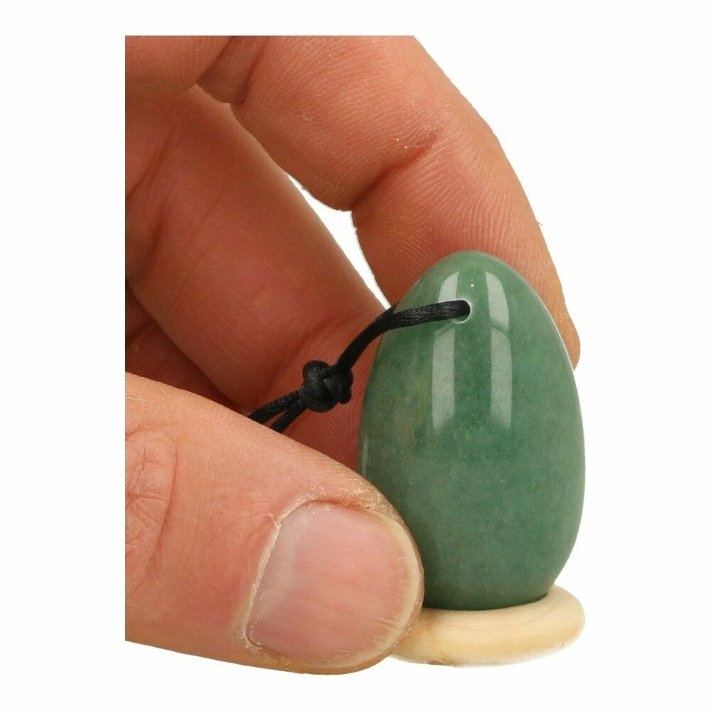 Fraai groene aventurijn yoni ei van circa 40mm hoog en 2,5cm diameter met gaatje. Je ontvangt een soortgelijk groene aventurijn yoni ei als op de foto, met houten ringetje. Je kunt op deze pagina meer lezen over het gebruik van een yoni ei. Let op, niet direct in kokend water desinfecteren, dan kan de steen kapot gaan. Laat het yoni ei vanuit koud water langzaam opwarmen en na koken laten afkoelen.