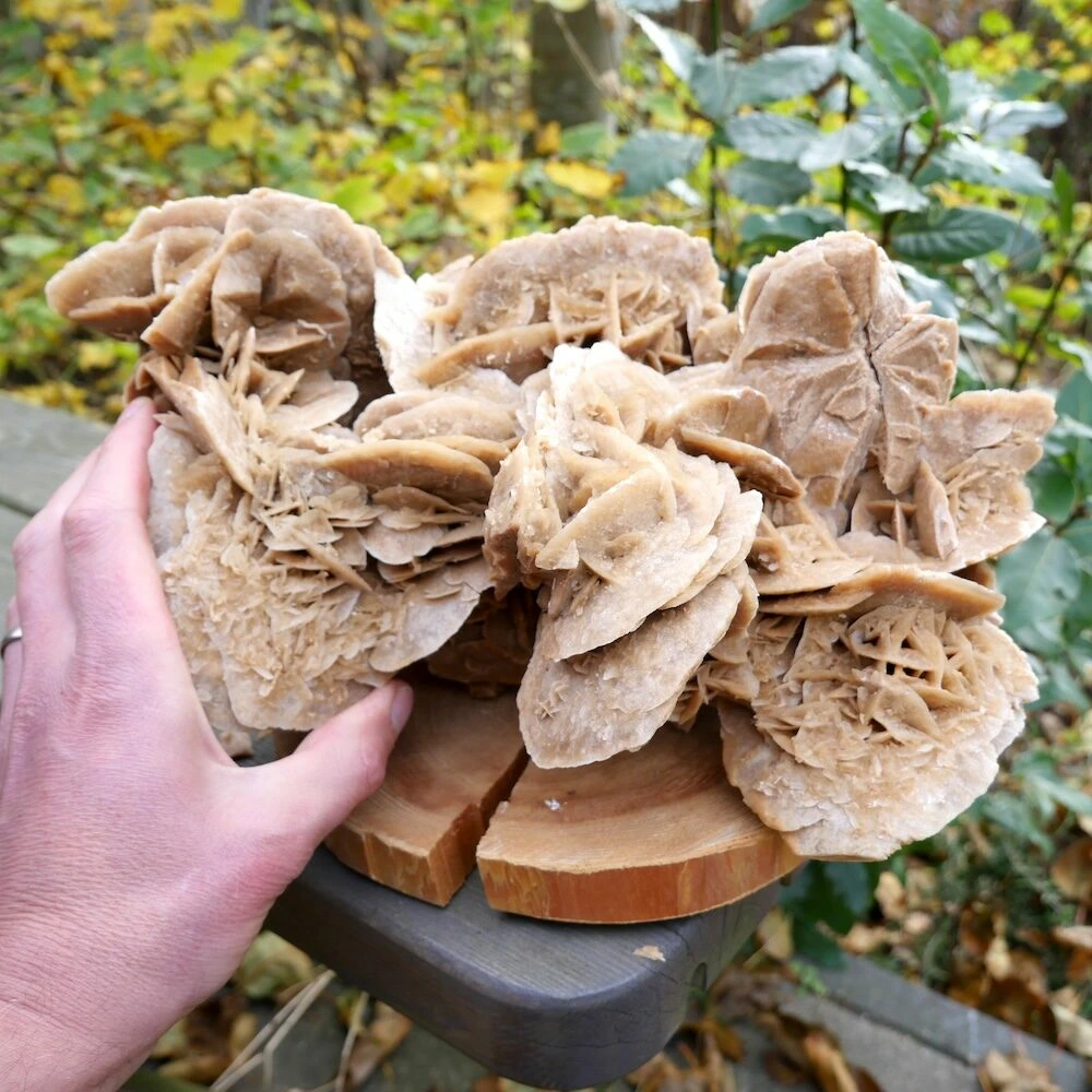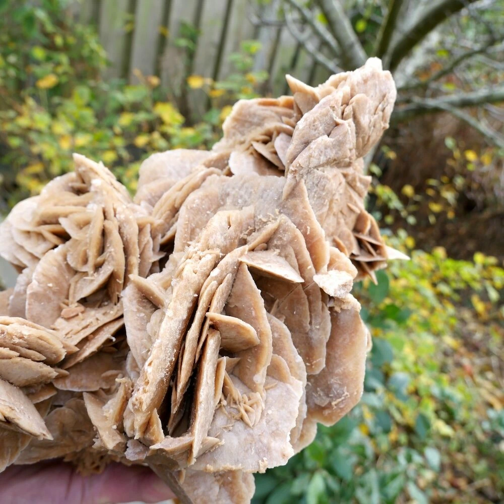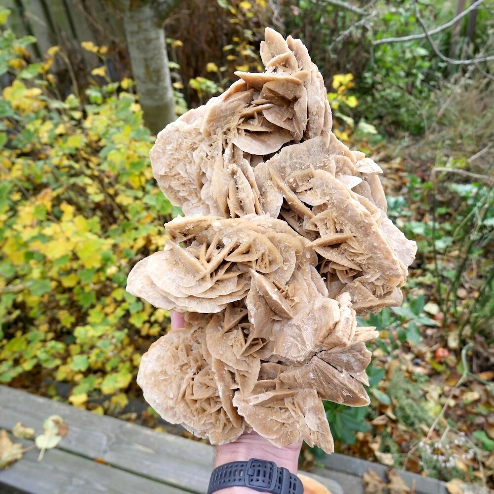 Fraaie grote woestijnroos ‘nr2’ van 34 x 25 x 17cm uit Tunesië. Deze grote woestijnroos heeft een fraaie vorm met een grote variatie aan ‘rozen’ met mooie details en een ander aanzicht van iedere zijde. Een uniek stuk zo uit het zand. Je ontvangt de grote woestijnroos van de foto.