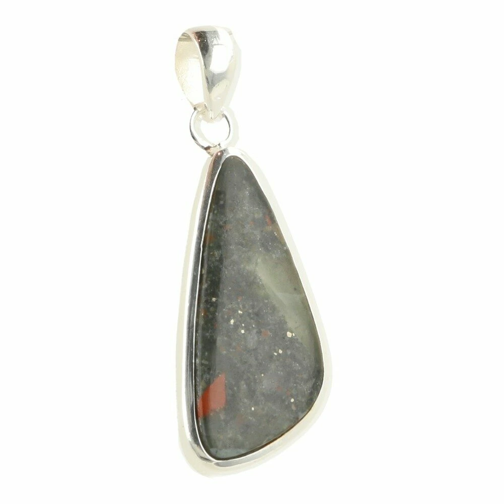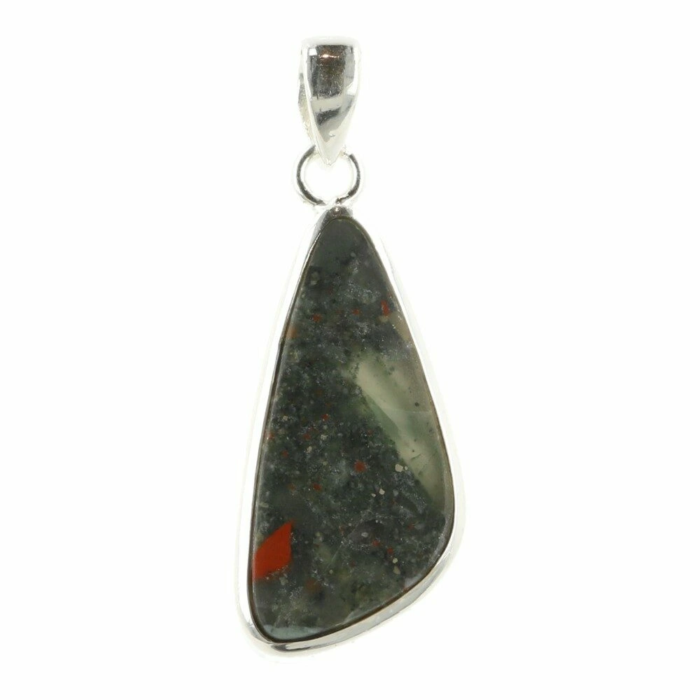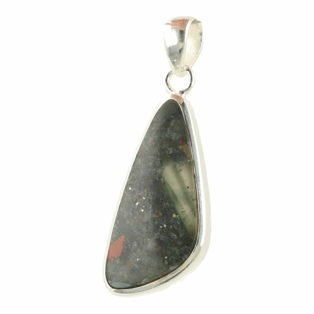 Fijne donkergroene heliotroop hanger in zilver ‘nr1’. Deze Afrikaanse heliotroop of bloedsteen is gevat in juwelierskwaliteit 925 sterling zilver. De afmeting van de heliotroop in de hanger is ongeveer 34mm hoog en 15mm breed. Je ontvangt uiteraard de hanger van de foto.