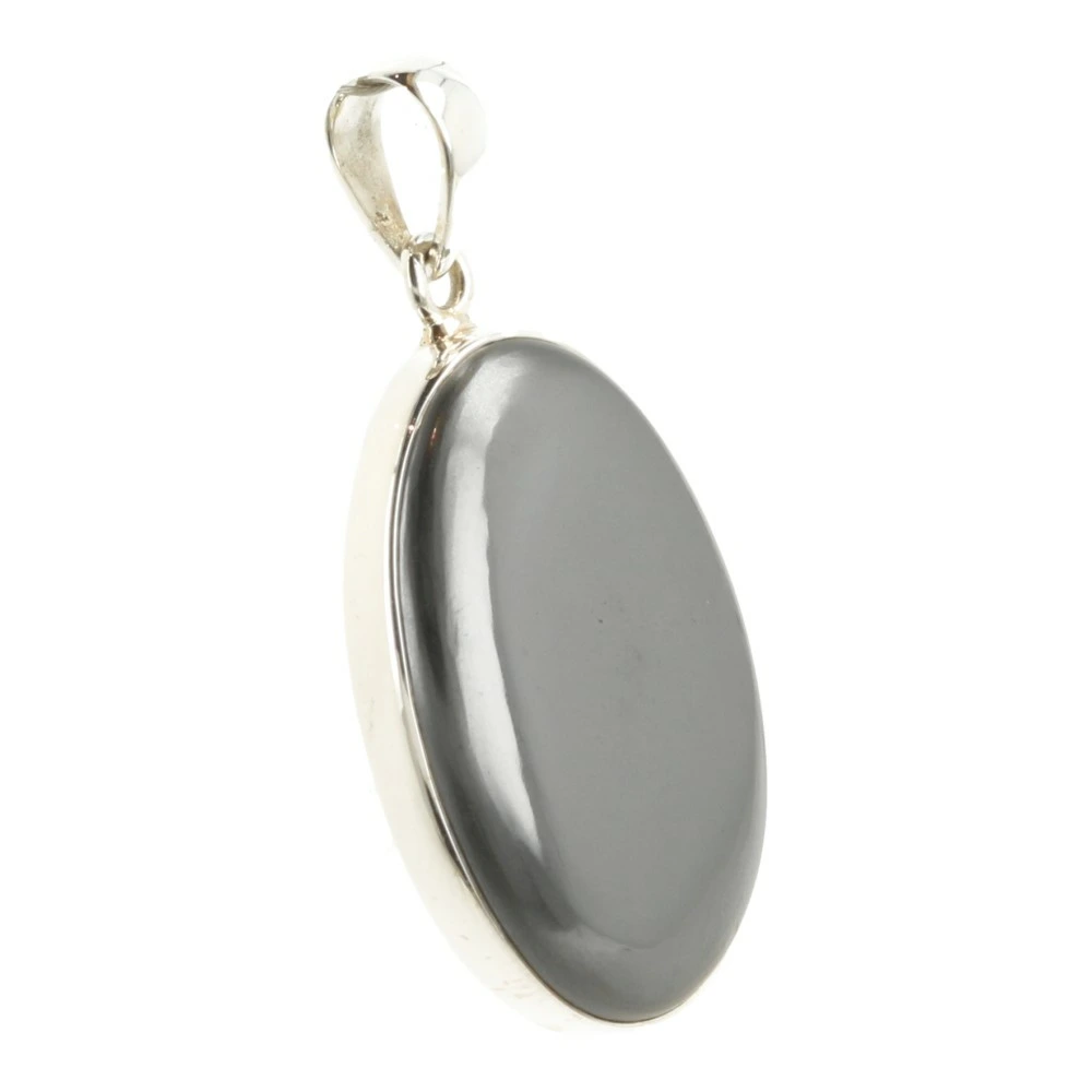 Glimmende grijs-metalen hematiet hanger in zilver ‘nr1’. Deze fraai gepolijste hematiet is gevat in juwelierskwaliteit 925 sterling zilver. De afmeting van de hematiet steen in de hanger is ongeveer 32mm hoog en 22mm breed. Je ontvangt de hematiet hanger in zilver van de foto.