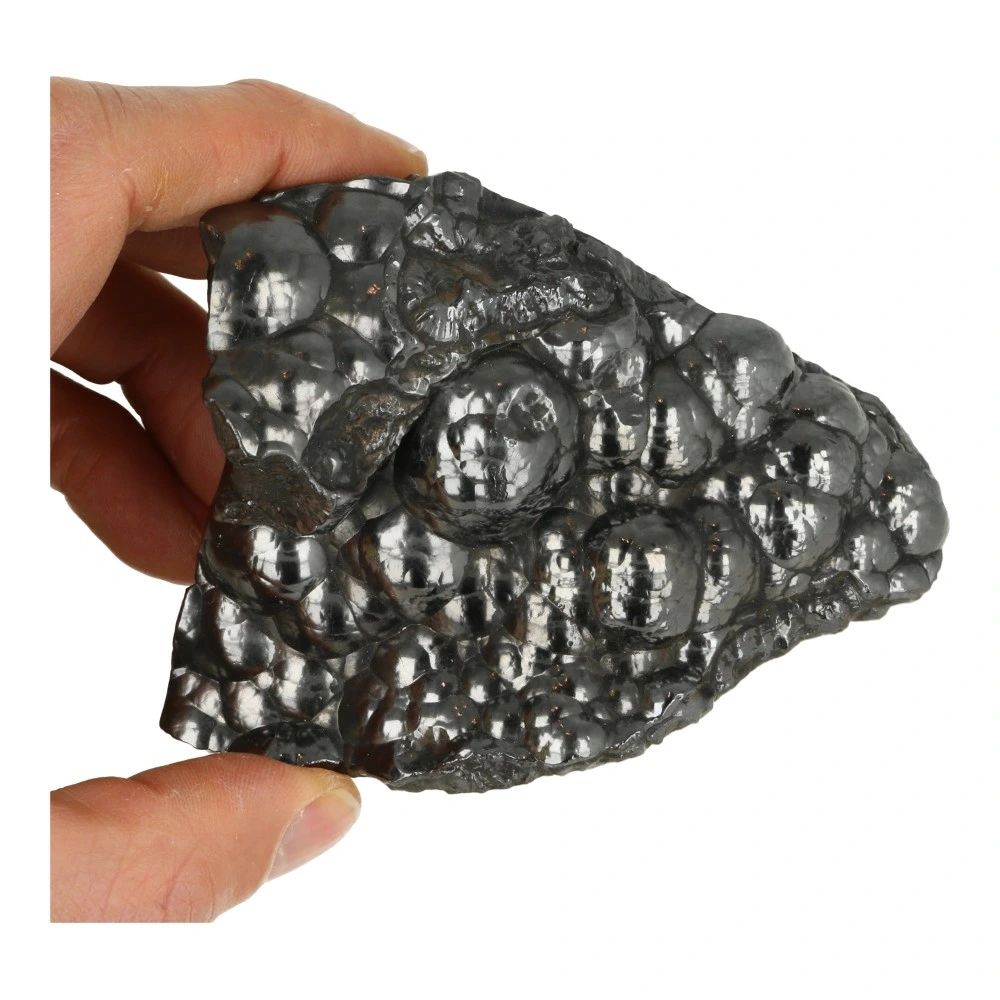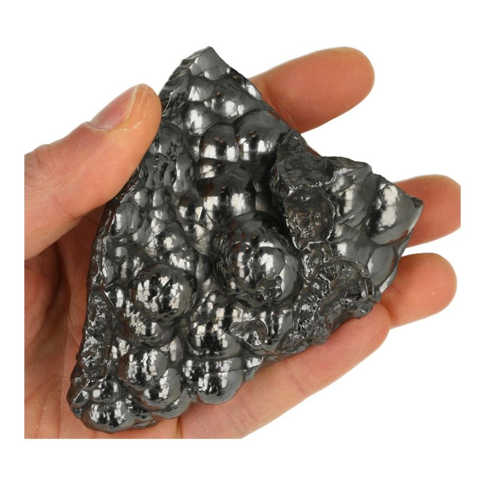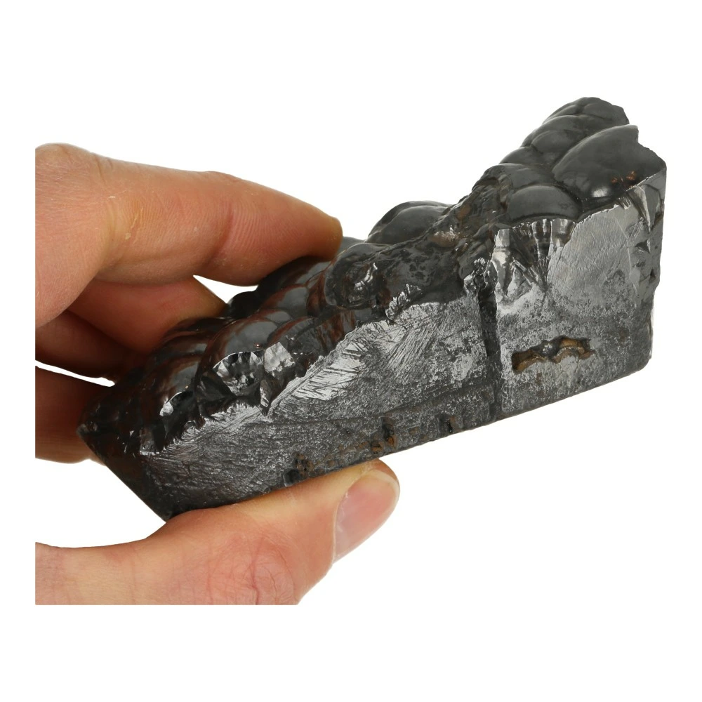 Mooi stukje ruwe hematiet met de kenmerkende bolvorm. De afmeting van dit stuk hematiet ruw is ongeveer 10,9cm lang, 8,2cm breed en ruim 4cm hoog. De randen van deze hematiet ruw zijn mooi glad gemaakt. Je ontvangt de hematiet ruw van de foto.