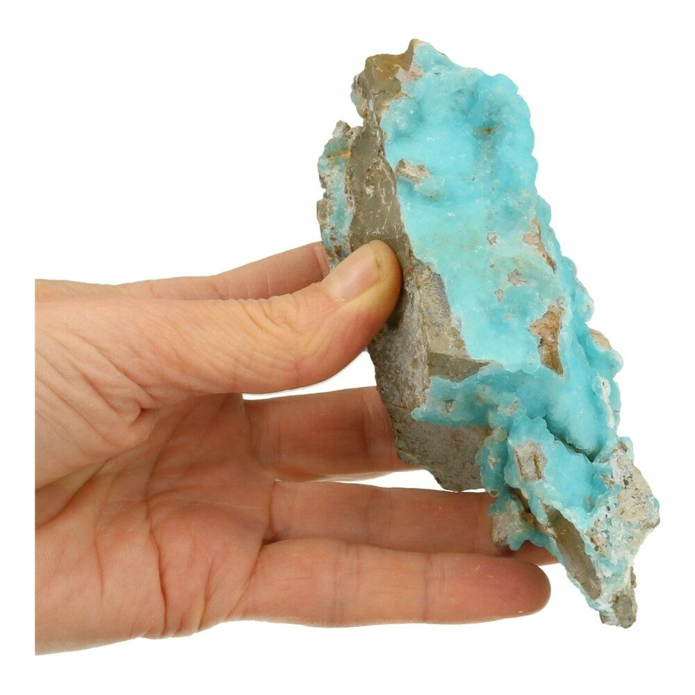 Fraai cluster helderblauwe hemimorfiet ruw nr1 uit de Mfouati mijn in Democratische Republiek Congo. De afmeting is ongeveer 12,5cm lang, 7cm breed en 5cm diep. Prachtige fluwelen kristallisatie met mooie glans en rondom prachtige hemimorfiet op matrix. Je ontvangt het stuk hemimorfiet van de foto.