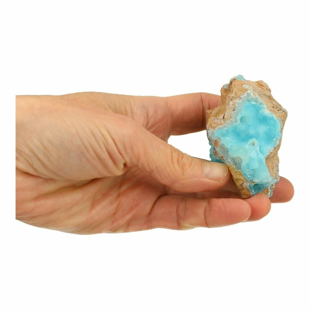 Fraai cluster helderblauwe hemimorfiet ruw nr2 uit de Mfouati mijn in Democratische Republiek Congo. De afmeting is ongeveer 7cm lang, 6,5cm breed en 3,5cm diep. Prachtige A-kwaliteit kleur met mooi glanzende kristallisatie en rondom prachtige hemimorfiet op matrix. Je ontvangt het stuk hemimorfiet van de foto.