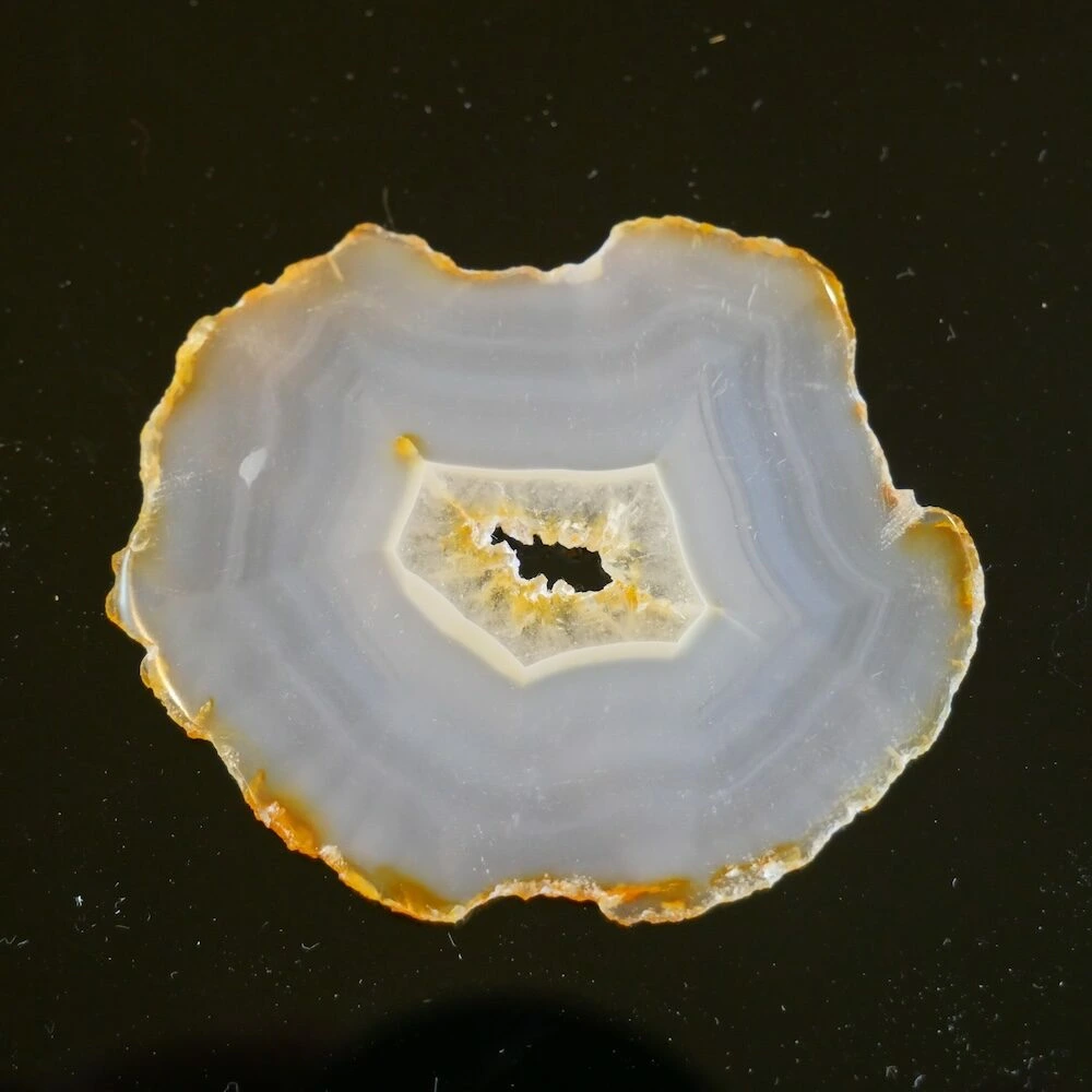 Je ontvangt de iris agaat schijf van de foto.