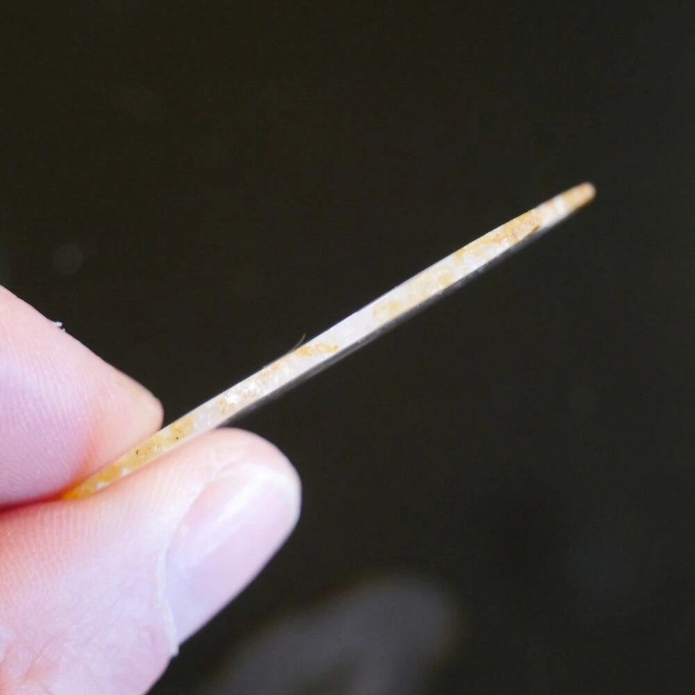Fraaie iris agaat schijf nr1 met holte en veel regenboogjes als je er met een lichtje achter schijnt. Deze zeldzame iriserende agaat schijf komt uit Indonesië en heeft een afmeting van ongeveer 49mm hoog, 58mm breed en 2mm dik. Fraai om recht neer te zetten met een klein lampje er achter. De foto is gemaakt met het lampje van een mobiele telefoon er onder.