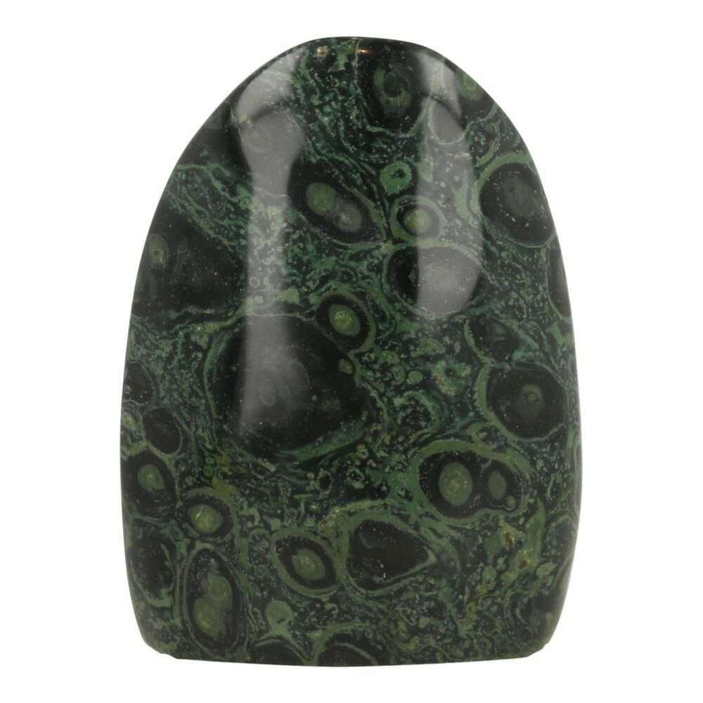 Kambaba jaspis is een grijs-groene variant van jaspis en heeft donkere ‘ogen’ in de steen.