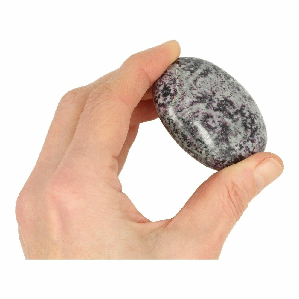 Zeldzame kammereriet knuffelsteen ‘nr1’ van ongeveer 5,8cm lang en 4,5cm breed uit India. Je ontvangt de kammereriet knuffelsteen van de foto.