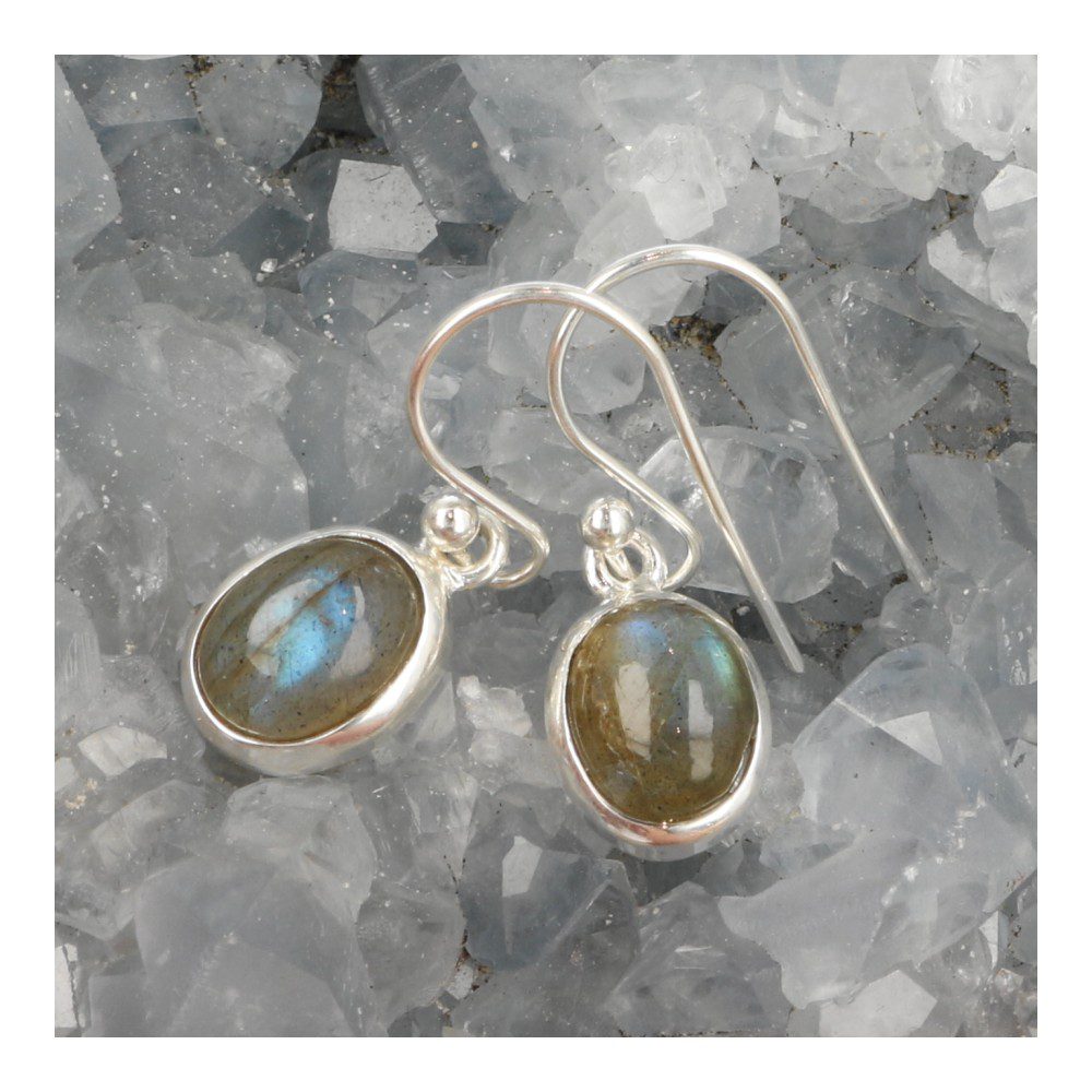 Labradoriet oorbel in zilver ovaal
