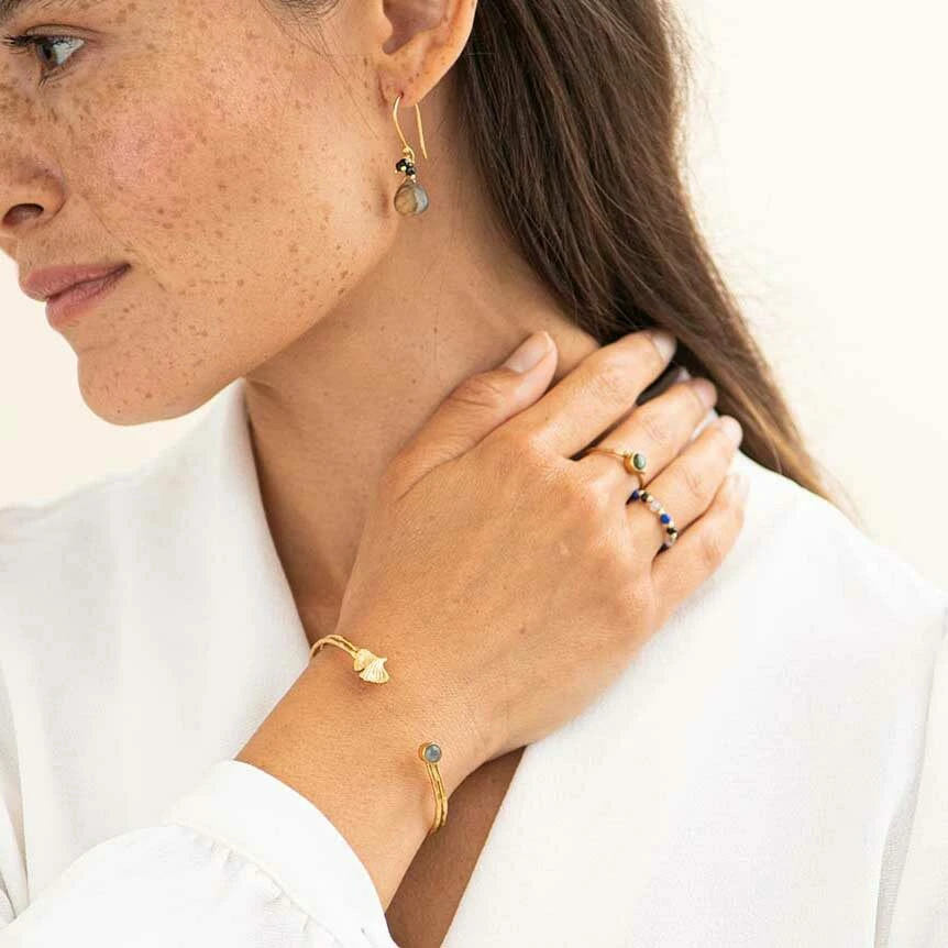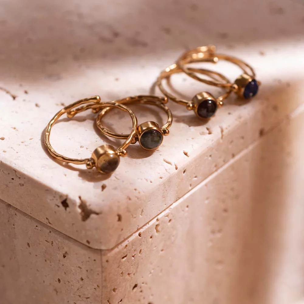 Ontdek de Faithful Labradoriet Vergulde Ring van A Beautiful Story. Deze ring is gemaakt van verguld messing en heeft een kleine labradoriet edelsteen. De binnenmaat is 1.6 cm, maar deze is makkelijk verstelbaar.