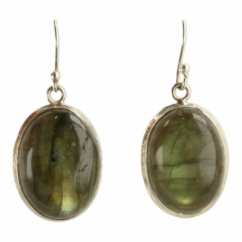 De afmeting van de labradoriet steen in de hanger is 30mm hoog en 21mm breed. De oorbellen hebben een labradoriet van ongeveer 19x14mm.