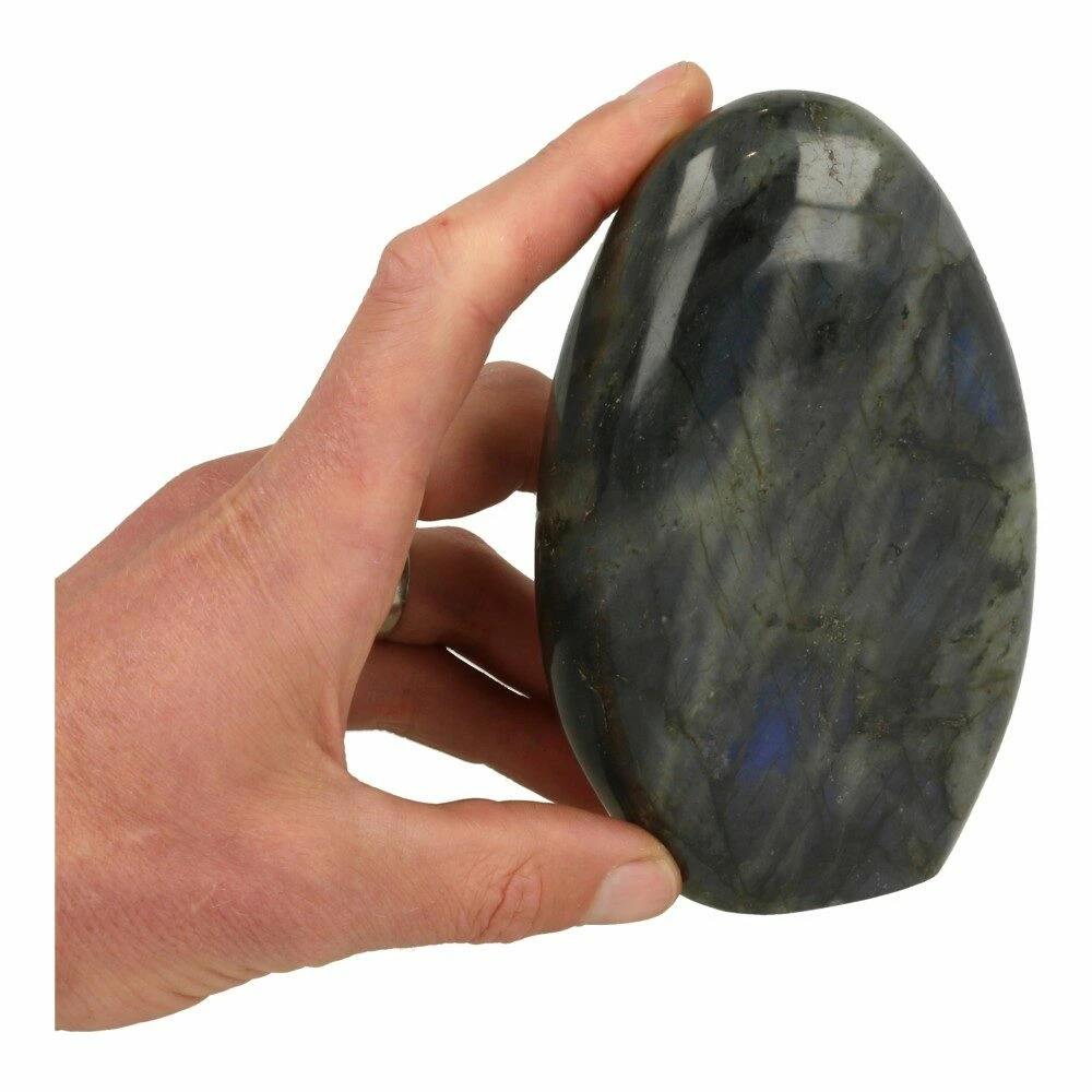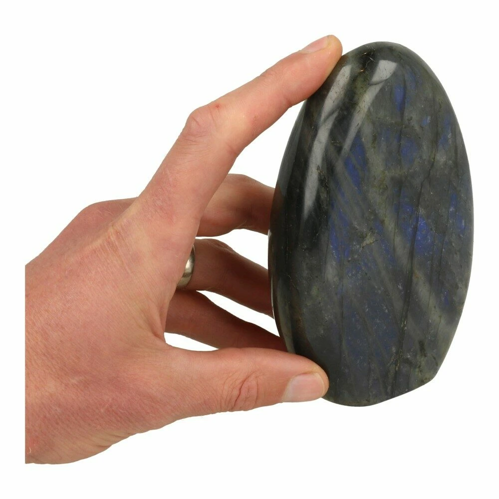 Bijzondere labradoriet zuil met mystieke blauwe glans op beide zijdes. Het is lastig om de diepblauwe glans op de foto te ‘vangen’, maar deze is er duidelijk aan beide zijdes. Doordat deze wat meer verborgen is, is het een echte mystieke labradoriet die alleen onder de juiste hoek zijn ware, prachtige aard laat zien. Erg bijzonder! De afmetingen zijn ongeveer 145mm hoog, 89mm breed en 40mm dik. Je ontvangt de labradoriet gepolijste zuil van de foto. In het echt nog mooier en een fijne steen om je te helpen te verdiepen in jezelf. Een fijn steen voor spirituele groei en het verkennen van nieuwe facetten van jezelf en anderen.