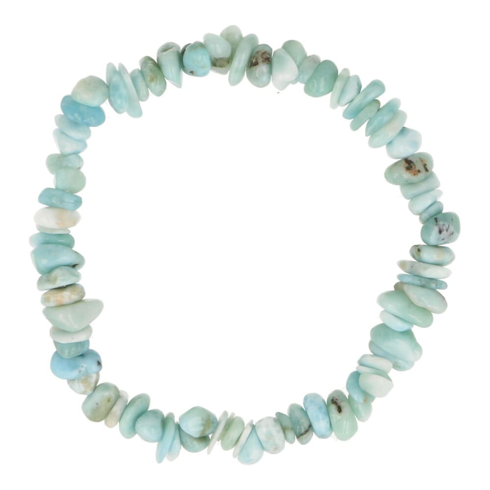 Mooie, echte larimar armband split aan rekbaar koord uit de Dominicaanse Republiek. Je ontvangt een soortgelijke larimar armband als op de foto. Door de omtrek van circa 18cm is de armband geschikt voor een gemiddelde polsdikte.