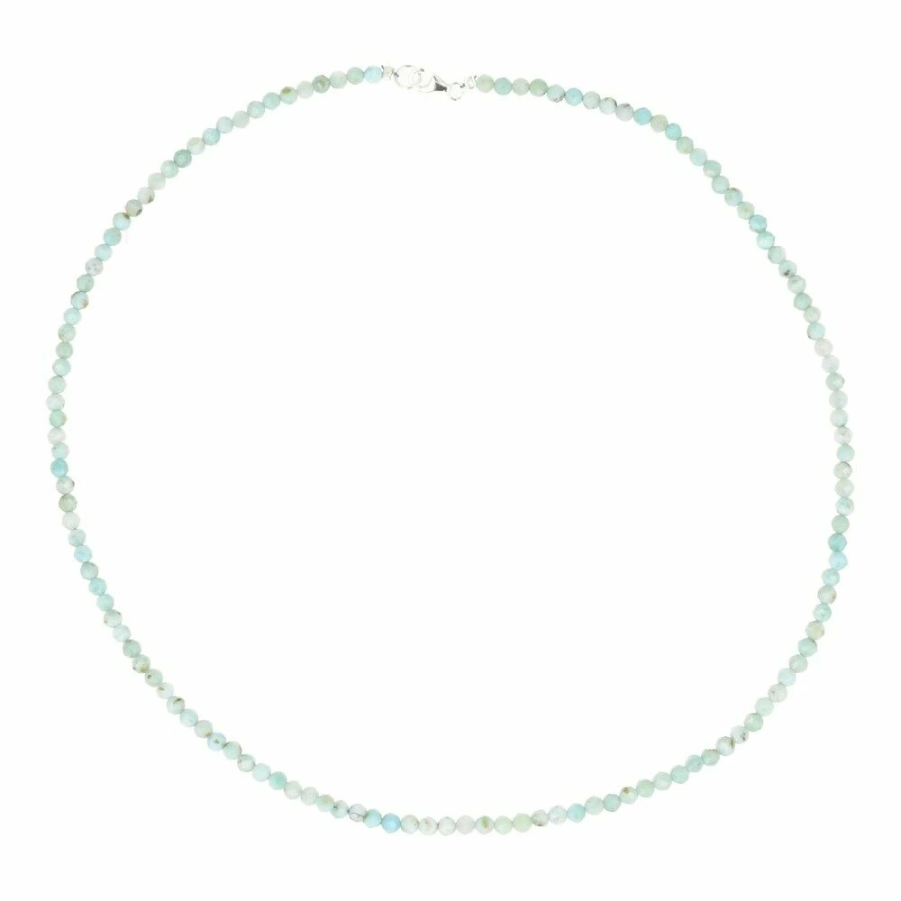 Fijne larimar ketting met facet geslepen kralen van 2mm. De sluiting van deze larimar ketting is van zilver. De kralen hebben een diameter van 2mm en zijn facet geslepen. Door deze slijpvorm schitteren ze je tegemoet, zeer fraai. Je ontvangt een soortgelijke larimar ketting als op de foto, de kwaliteit is zeer gelijkwaardig. Deze zijn zeer mooi om te combineren met een larimar hanger in zilver.