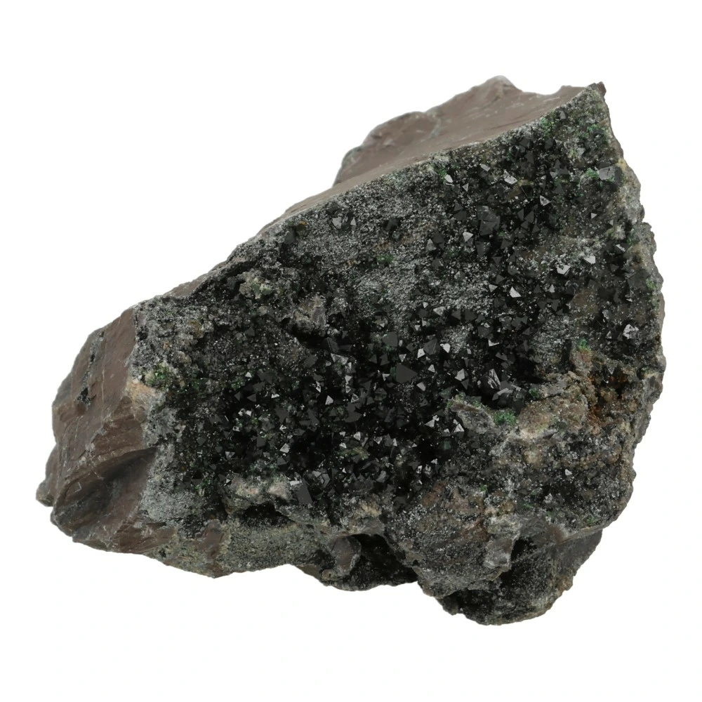Fraaie libetheniet ruw nr5 uit Shituru, Congo. De afmetingen van dit unieke en zeldzame stuk zijn ongeveer 6,2cm breed, 6,2cm diep en 4,5cm hoog. Dit stukje heeft mooie losstaande donkergroene kristallen aan de bovenzijde en kleinere, lichtergroene kristallen aan de onderzijde. Je ontvangt dit zeldzame stuk libetheniet van de foto.
