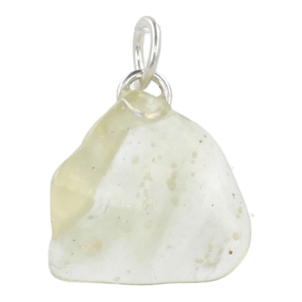 Wit-gelige Libisch woestijnglas (of goudtektiet)hanger met oogje van circa 1,3-2cm hoog. Je ontvangt de Libisch woestijnglas hanger zonder koordje en kunt deze mooi dragen aan een zilveren ketting. Je ontvangt een soortgelijke hanger als op de foto.