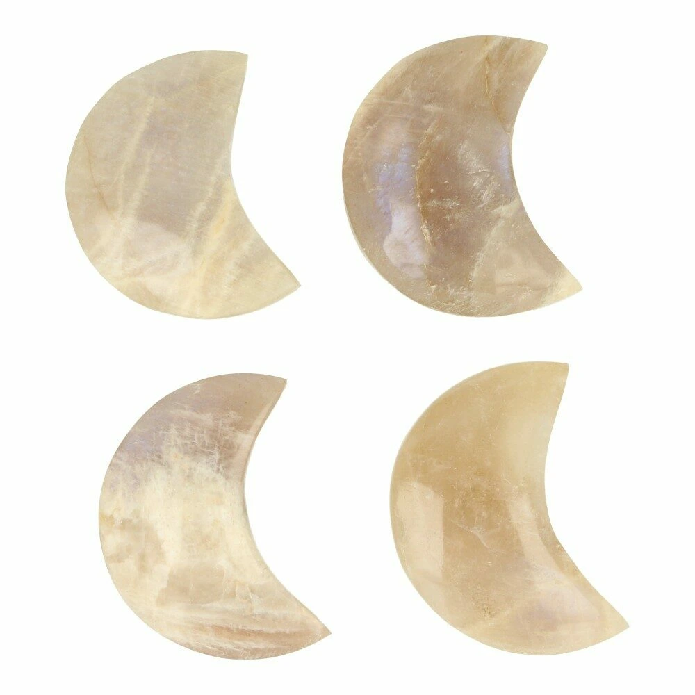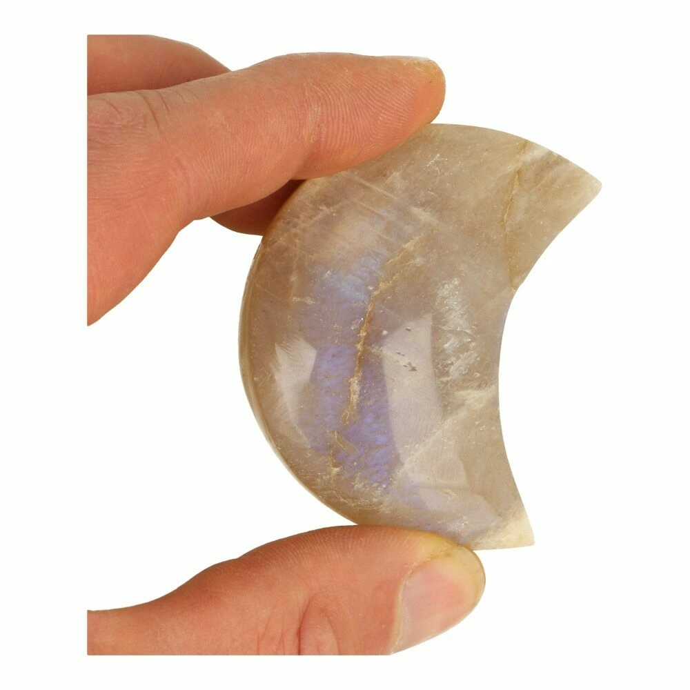 Mooie A-kwaliteit maansteen maan met fraaie blauwe glans uit Tanzania. Deze fraaie maansteen maan met blauwe glans is ongeveer 6cm hoog, 4,5-5,5cm breed en 1,2-2cm dik. Iedere maansteen maan heeft een blauwe glans bij de juiste lichtinval, super mooi! Je ontvangt een soortgelijke maansteen maan als op de foto.
