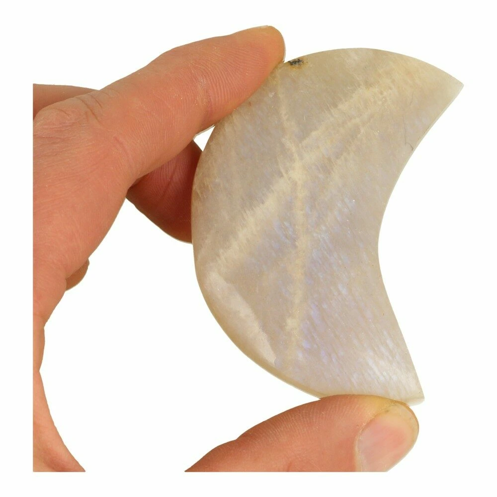 Mooie A-kwaliteit maansteen maan met fraaie blauwe glans uit Tanzania. Deze fraaie maansteen maan met blauwe glans is ongeveer 7-8cm hoog, 5-6cm breed en 1,2-2cm dik. Iedere maansteen maan heeft een blauwe glans bij de juiste lichtinval, super mooi! Je ontvangt een soortgelijke maansteen maan als op de foto.