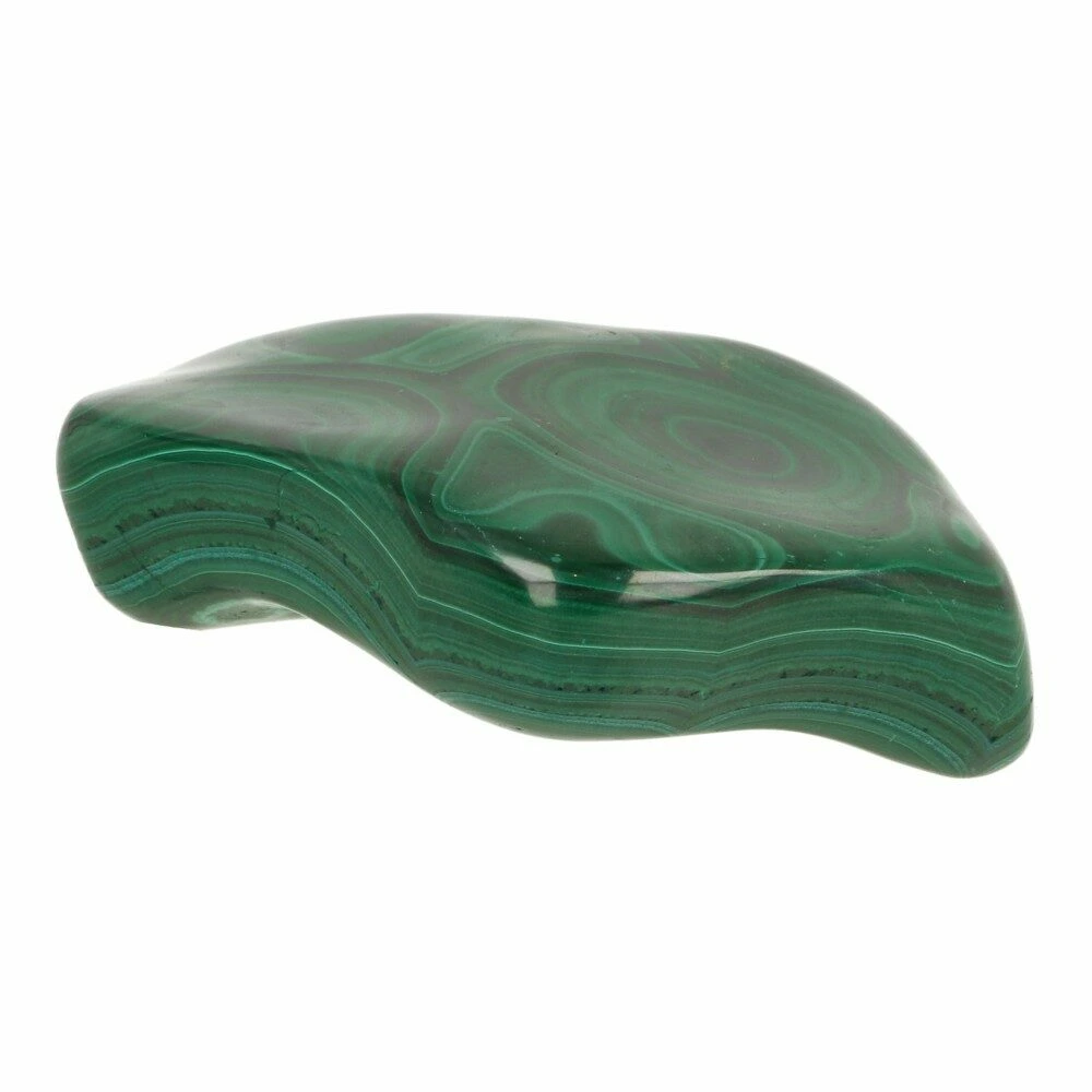 Malachiet is een kopercarbonaat met een hardheid van 3,5 tot 4. Het malachiet dat verkrijgbaar is komt uit botryoïdale massa’s met vezelige banden in lichtere en donkerdere tinten. Malachiet komt zelden in kristalvorm voor en kan zich ook voordoen als stalactiet of korstvorm. De naam is mogelijk afgeleid van het Griekse woord voor zijn kleur ‘malache’ (kaasjeskruid), of van de geringe hardheid van het Griekse ‘malakos’ (zacht). Malachiet is soms vergroeid met azuriet of chrysocolla.
