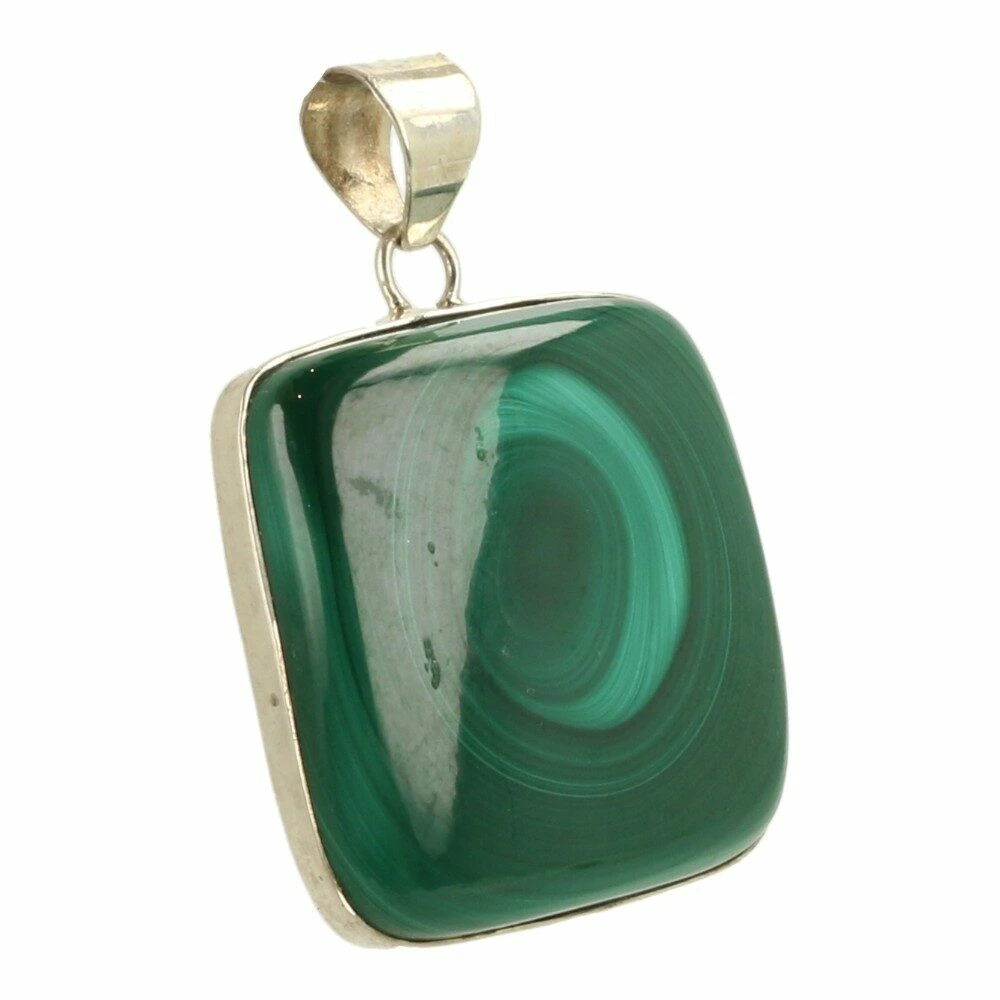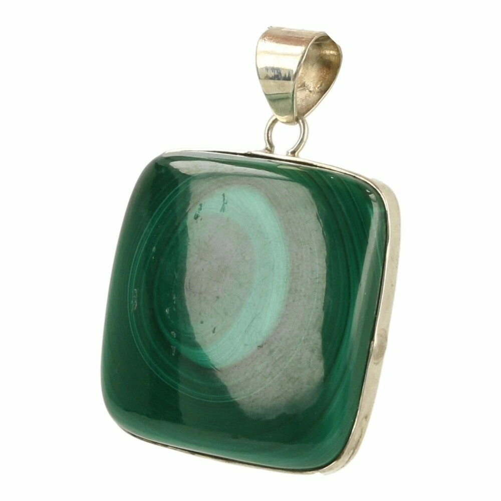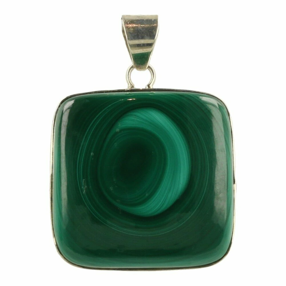 Fraaie groengeaderde malachiet hanger in zilver ‘MA8’. Mooie kwaliteit malachiet die in een 925 sterling zilveren hanger is gevat. De afmeting van de malachiet steen in deze hanger is ongeveer 33mm hoog en 34mm breed. Je ontvangt de malachiet hanger in zilver van de foto.