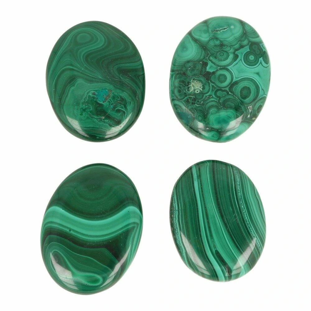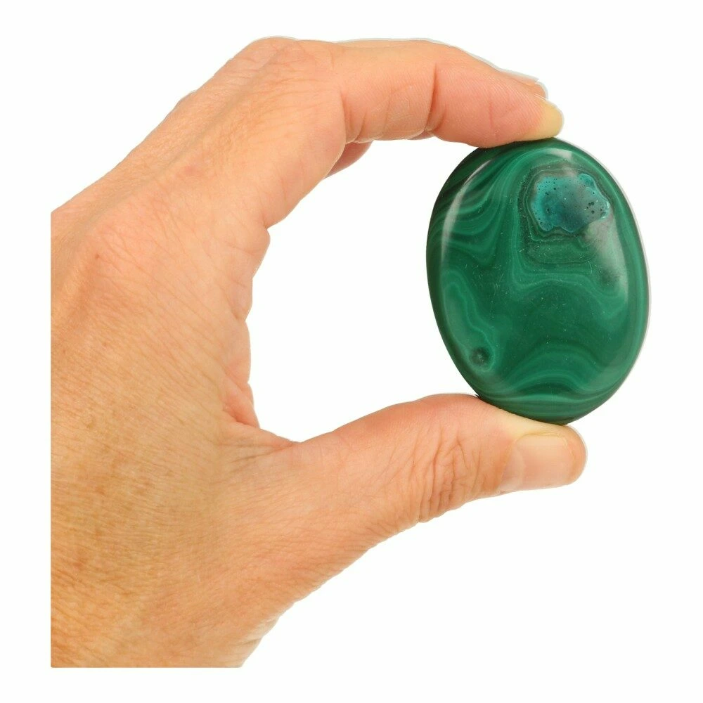 Mooie diepgroen geaderde malachiet zaksteen of platte oplegsteen. Je ontvangt een soortgelijk malachiet zaksteen als op de foto. De afmetingen zijn ongeveer 4,5 – 5 cm lang, 3,5-4cm breed en 1cm dik.
