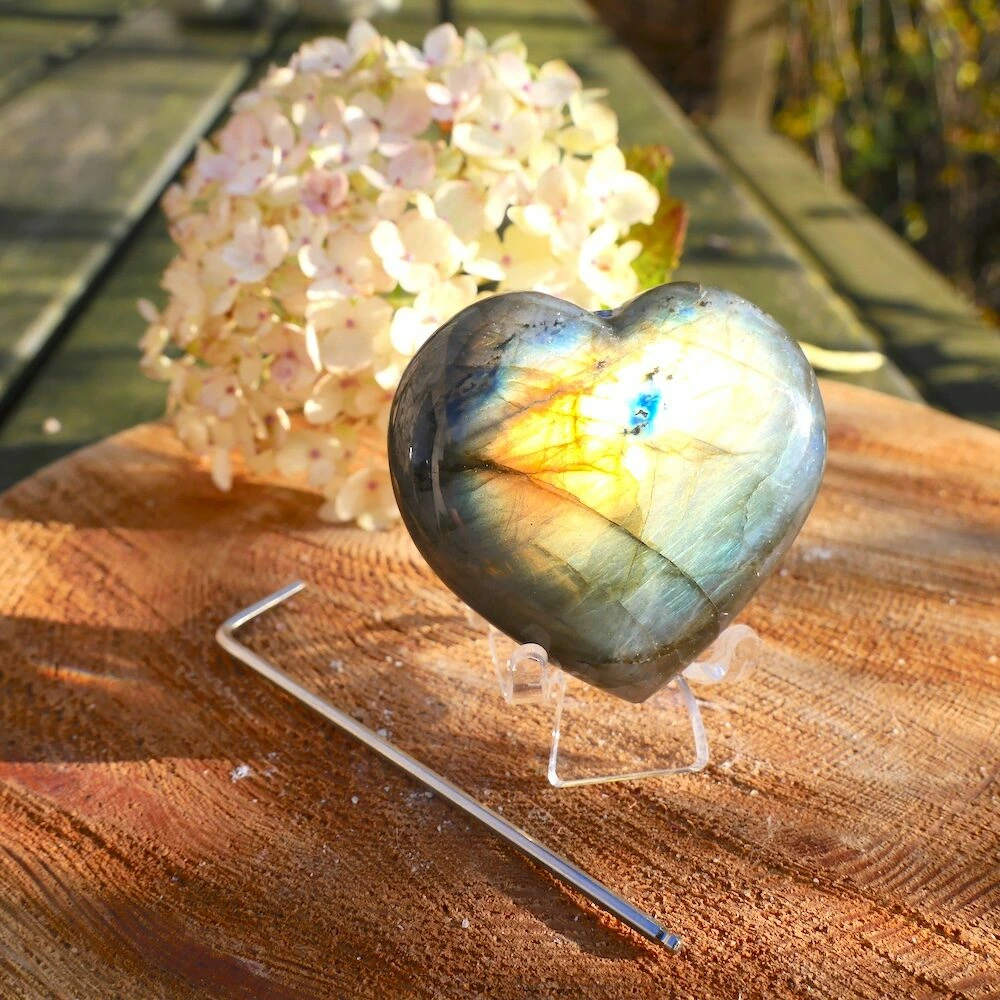 Daardoor is labradoriet een krachtige beschermer. Het helpt je bij jezelf te blijven en verbindingen met anderen zuiver te houden. Zuivert en herstelt je innerlijke verbinding met je pure zelf, activeert je innerlijke oog en is een steen van kracht en eenheid achter de ogenschijnlijke dualiteit.