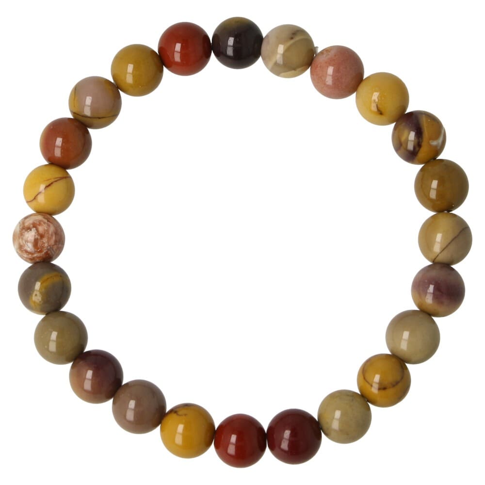 Mooie heldergekleurde mookaiet jaspis armband met kralen van 8mm. Iedere kraal in de mookaiet jaspis armband is anders van kleur en tekening. Het zijn hele mooie armbanden, je ontvangt een soortgelijke mookaiet jaspis armband als op de foto. De lengte past bij een polsomtrek van circa 16-17cm.