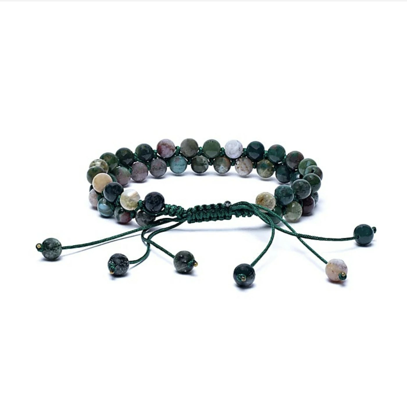 Leuke mosagaat armband met kralen van 6mm met dubbele rij kralen en in lengte verstelbaar. Deze armband heeft is ruim verstelbaar, zodat deze voor zowel de smallere als de bredere pols geschikt is. Iedere mosagaat armband is uniek, je ontvangt een soortgelijke als op de foto.