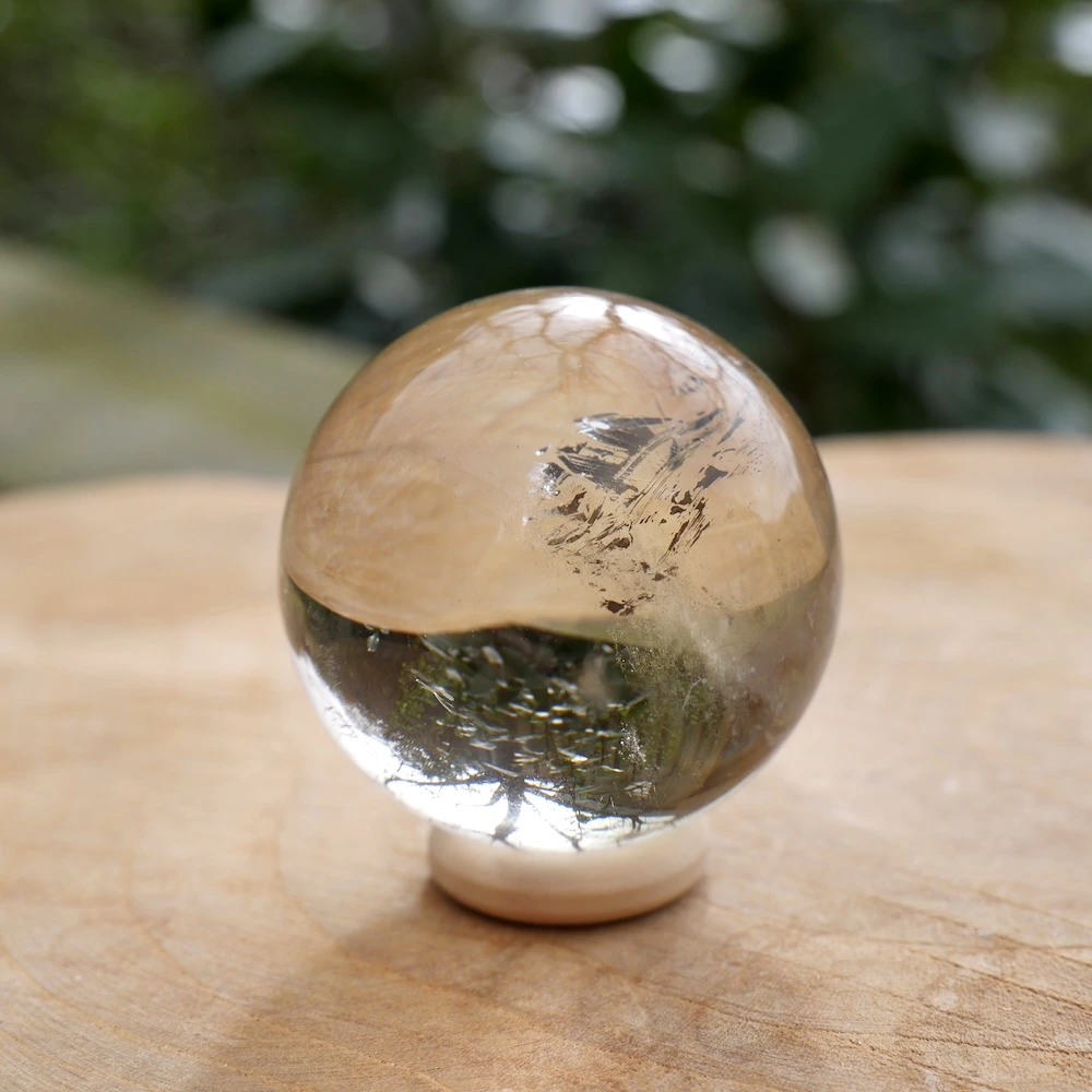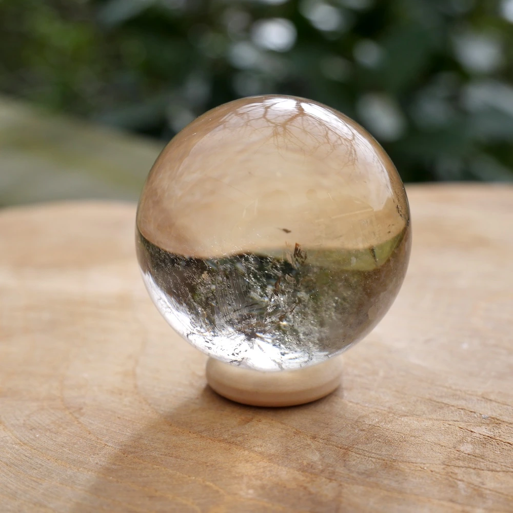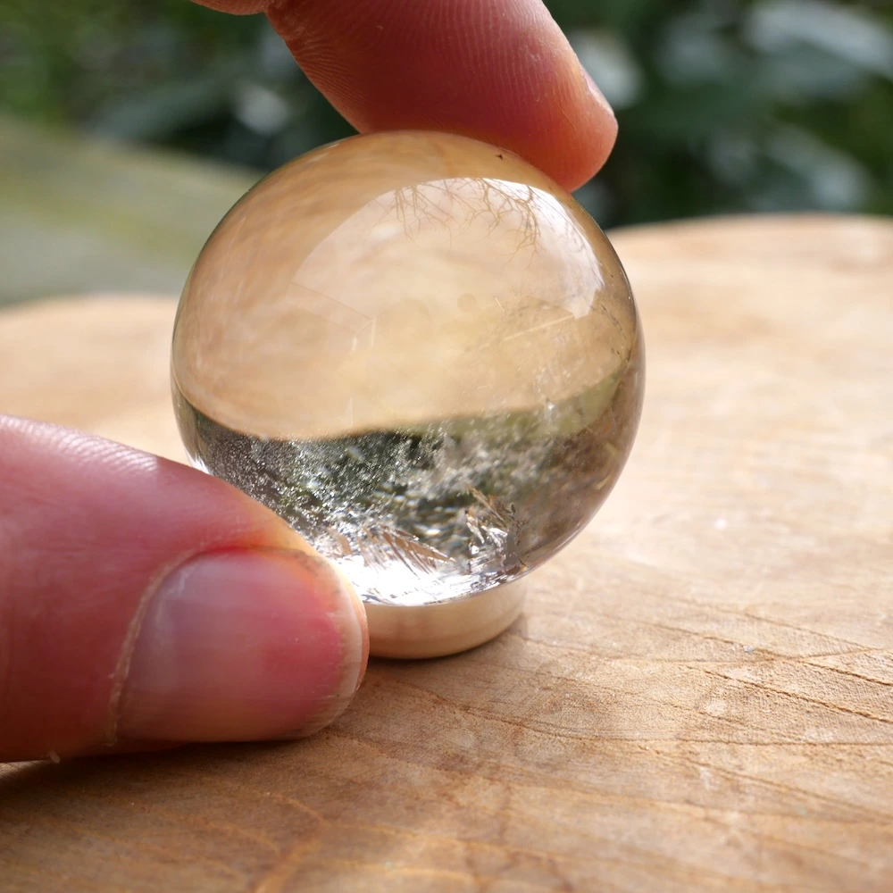 Fraaie natuurlijke citrien bol met een diameter van 37mm uit Madagaskar op houten ring. Deze fraaie citrien bol is mooi gepolijst en is hoge kwaliteit natuurlijke citrien met zachte kleur en energie. Je ontvangt de natuurlijke citrien bol van de foto.