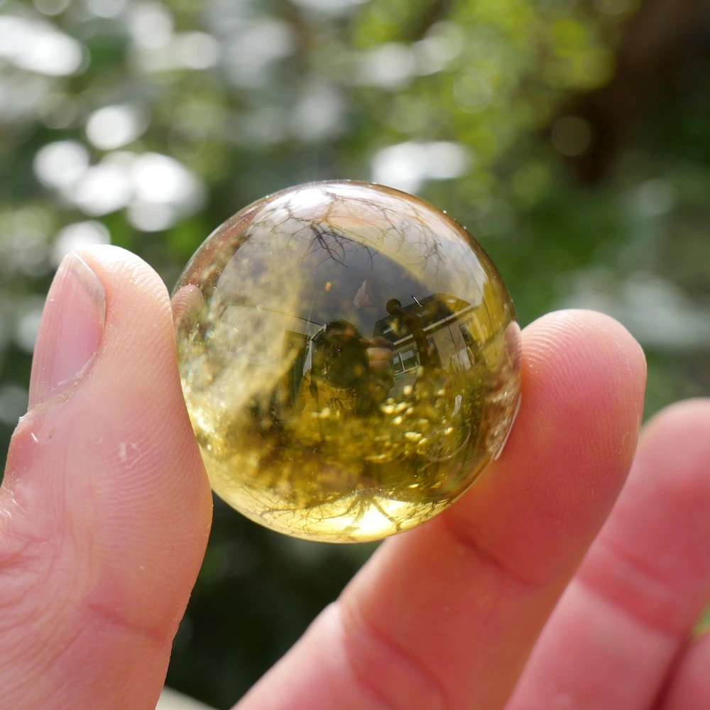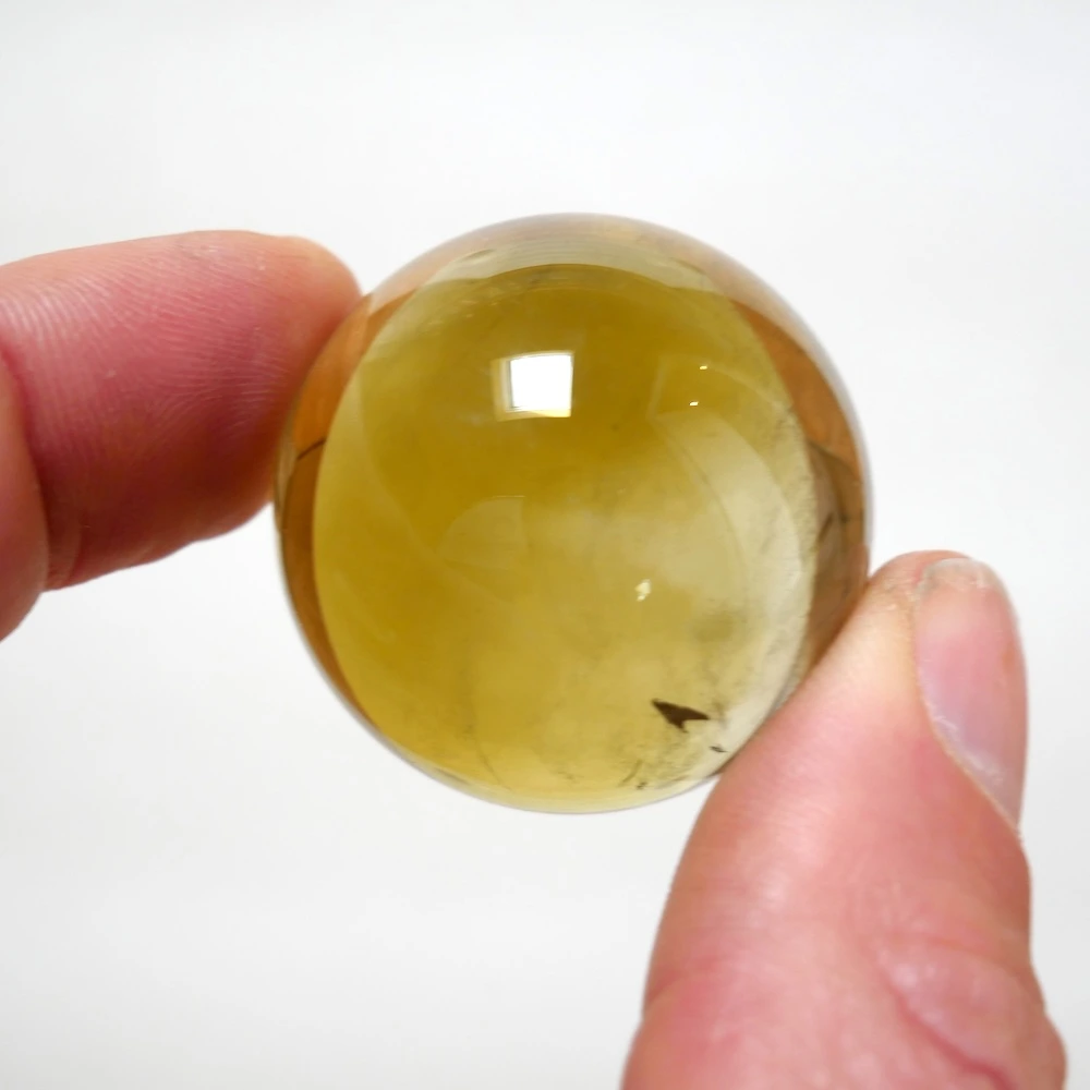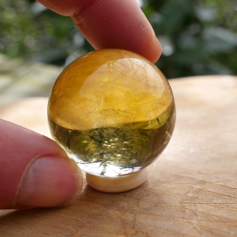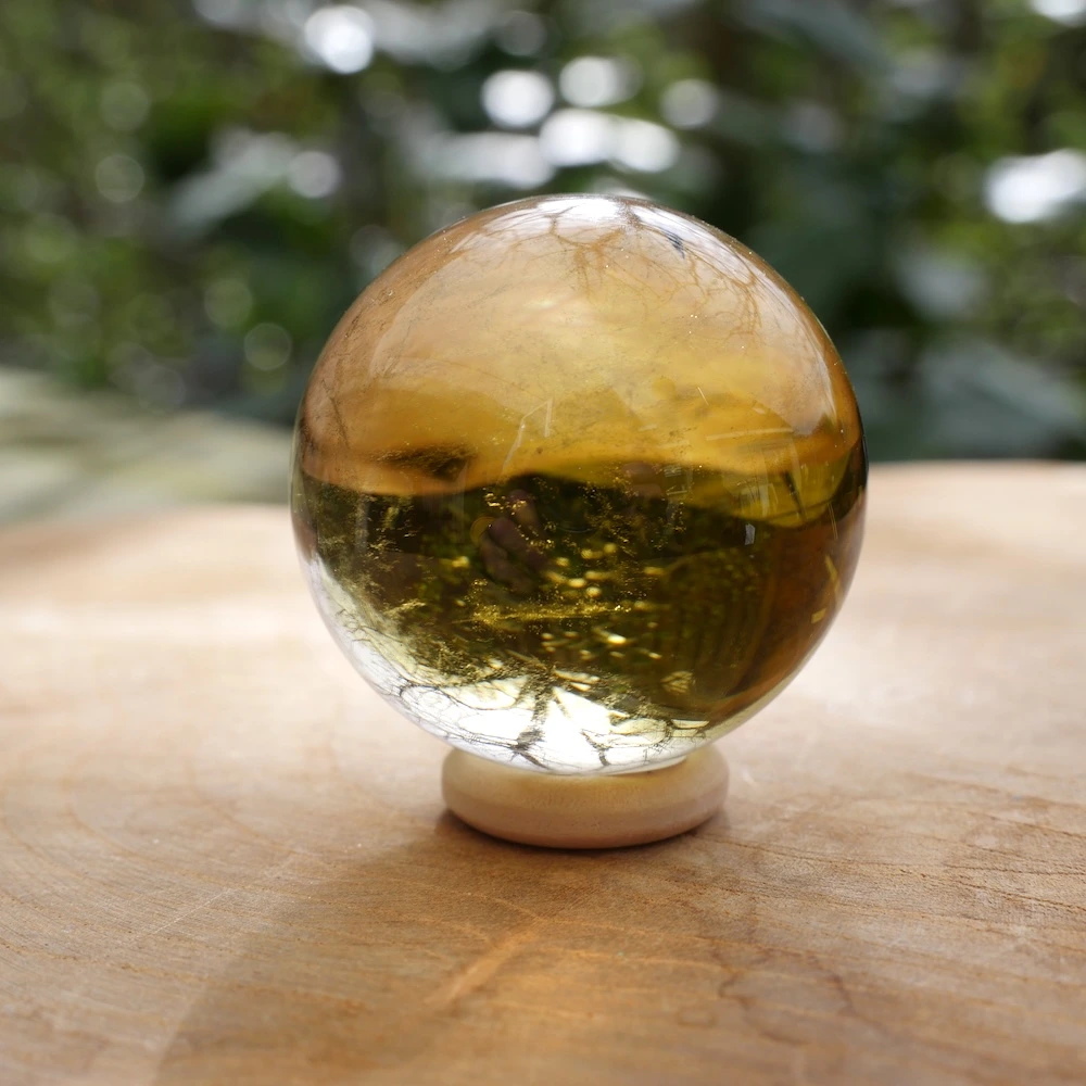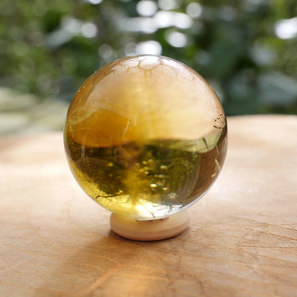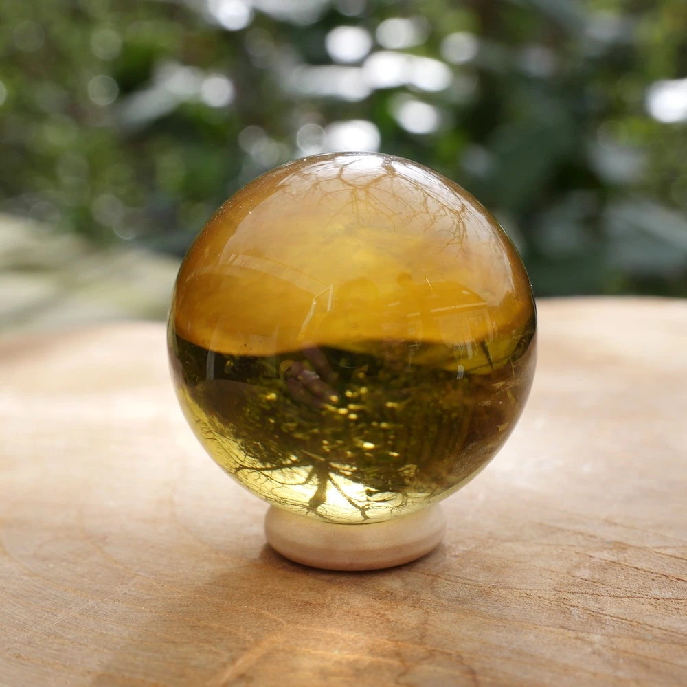 Fraaie gele natuurlijke citrien bol met een diameter van 38mm uit Madagaskar op houten ring. Deze fraaie citrien bol is mooi gepolijst en is hoge kwaliteit natuurlijke citrien. Je ontvangt de natuurlijke citrien bol van de foto.