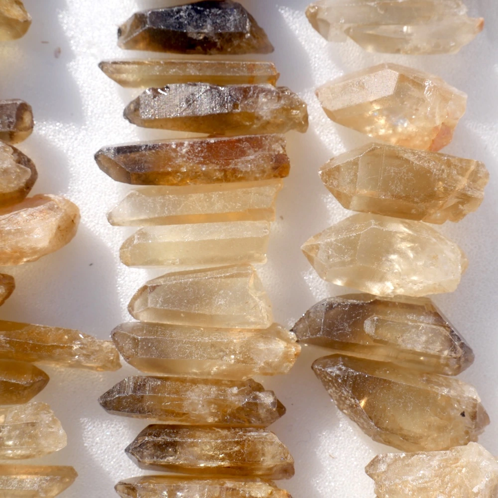 Natuurlijke citrien kristal van 2,5-4cm lang uit Democratische Republiek Congo. Zeldzame natuurlijke citrien, ofwel kundalini citrien, puur natuur en met kleine oneffenheden. Je ontvangt een soortgelijke natuurlijke citrien kristal als op de foto’s. Wil je er meer dan 10? Neem dan even contact op voor een aantrekkelijk aanbod.