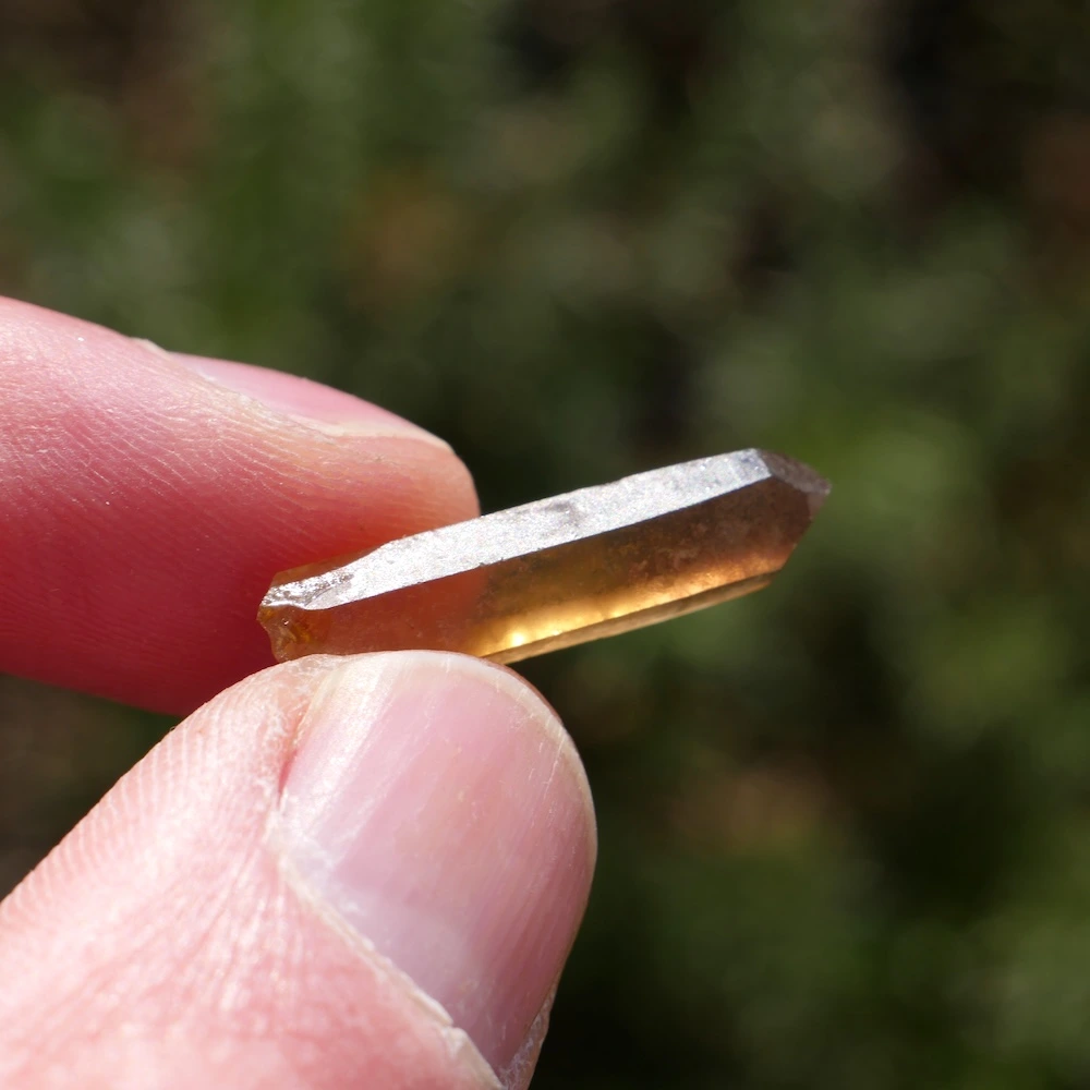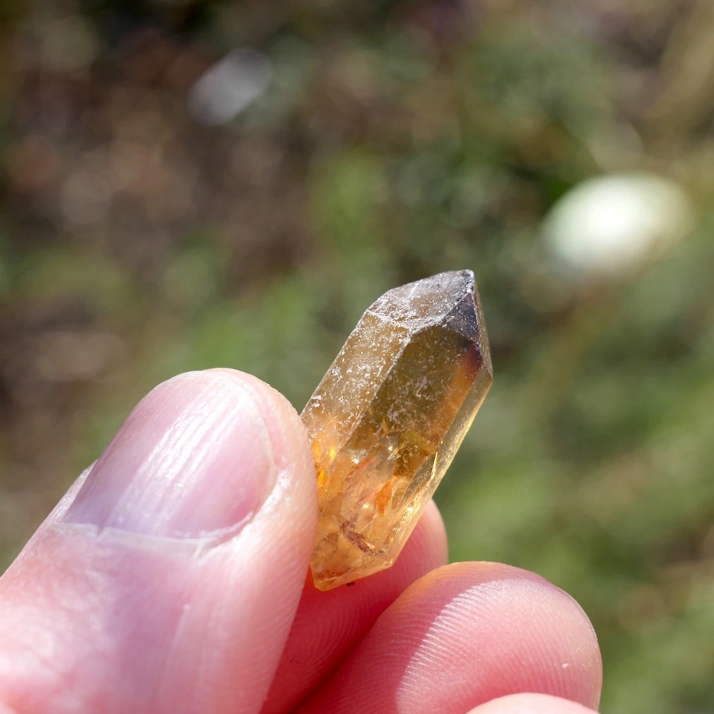 Natuurlijke citrien kristal van 2,5-4cm lang uit Democratische Republiek Congo. Zeldzame natuurlijke citrien, ofwel kundalini citrien, puur natuur en met kleine oneffenheden. Je ontvangt een soortgelijke natuurlijke citrien kristal als op de foto’s.