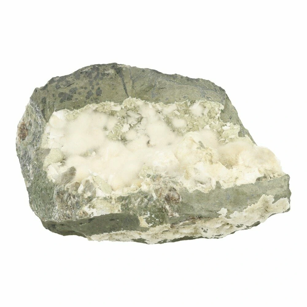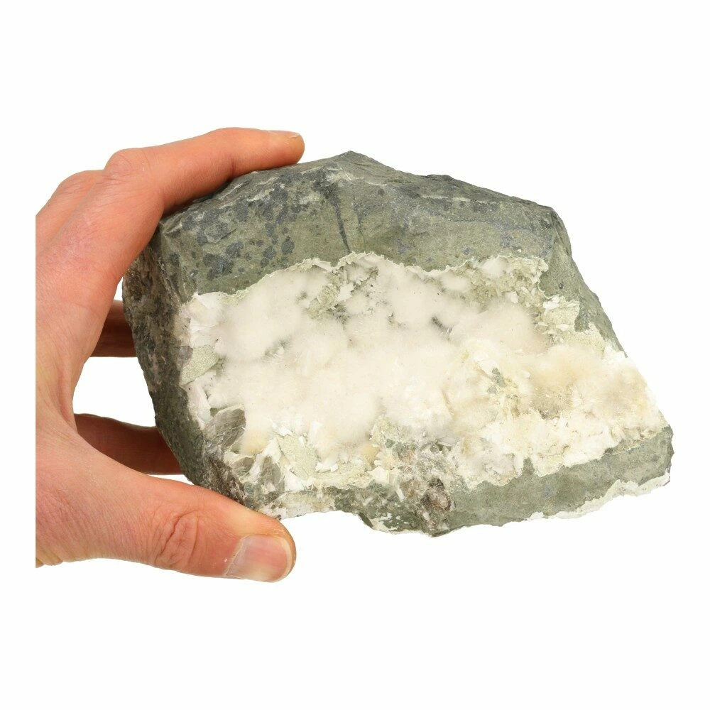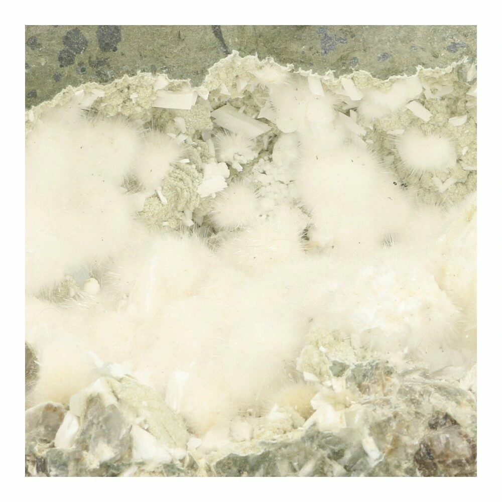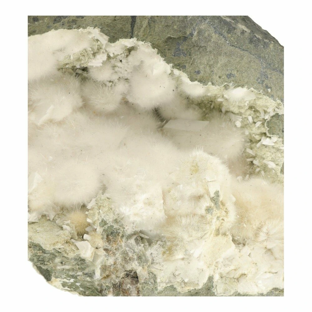 Okeniet is een bijzondere en zeldzame edelsteen die meteen herkenbaar is aan zijn zachte, wollige uitstraling. Dit unieke uiterlijk ontstaat door fijne, vezelige kristallen die samen kleine, pluizige bolletjes vormen. Okeniet is een calciumsilicaatmineraal dat vooral voorkomt in basaltbubbels en geoden, waardoor je het vaak vindt in gebieden met oude vulkanische activiteit. De meest geliefde okeniet komt uit India en IJsland, waar het in natuurlijke holtes groeit als tere, sneeuwwitte bolletjes die aan watten doen denken. Met een hardheid van 4,5 tot 5 op de schaal van Mohs is okeniet een kwetsbare steen. Ze zijn door hun dunne vorm kwetsbaar, dus de neiging om te voelen kun je beter weerstaan.