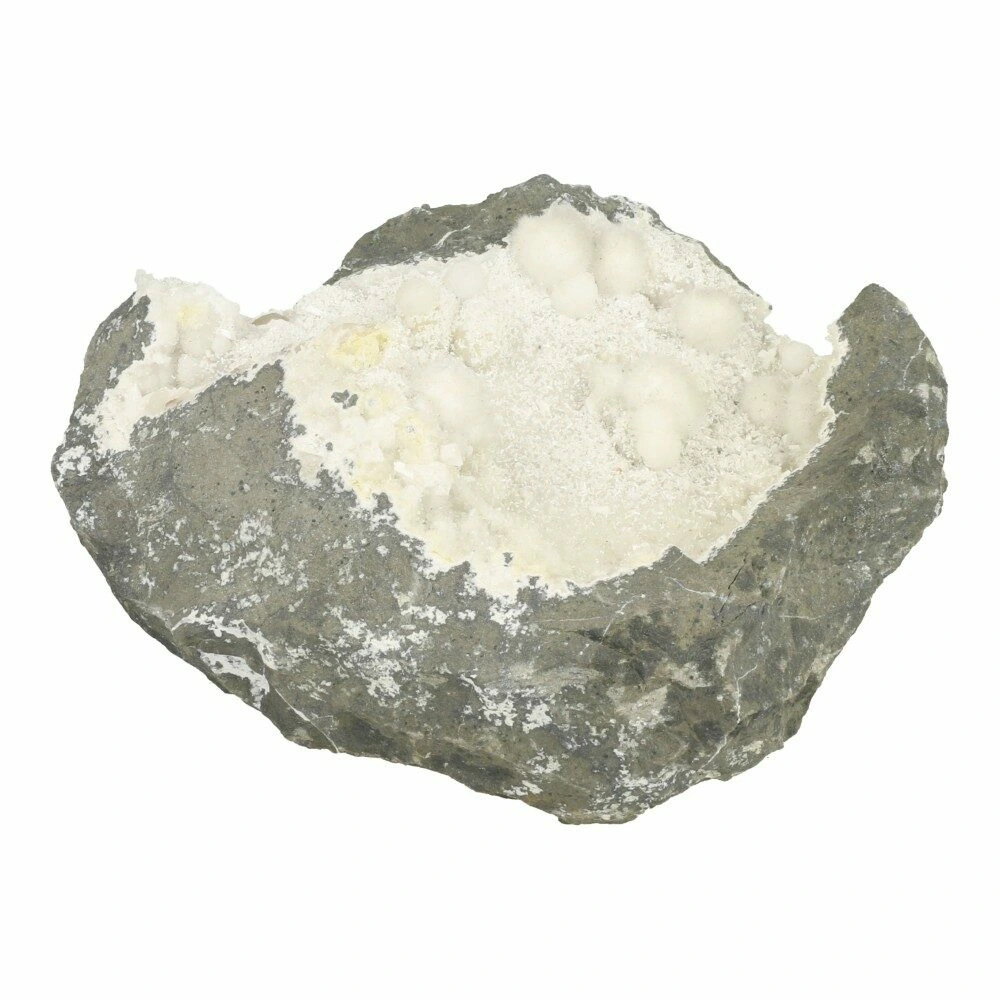 Okeniet is een bijzondere en zeldzame edelsteen die meteen herkenbaar is aan zijn zachte, wollige uitstraling. Dit unieke uiterlijk ontstaat door fijne, vezelige kristallen die samen kleine, pluizige bolletjes vormen. Okeniet is een calciumsilicaatmineraal dat vooral voorkomt in basaltbubbels en geoden, waardoor je het vaak vindt in gebieden met oude vulkanische activiteit. De meest geliefde okeniet komt uit India en IJsland, waar het in natuurlijke holtes groeit als tere, sneeuwwitte bolletjes die aan watten doen denken. Met een hardheid van 4,5 tot 5 op de schaal van Mohs is okeniet een kwetsbare steen. Ze zijn door hun dunne vorm kwetsbaar, dus de neiging om te voelen kun je beter weerstaan.