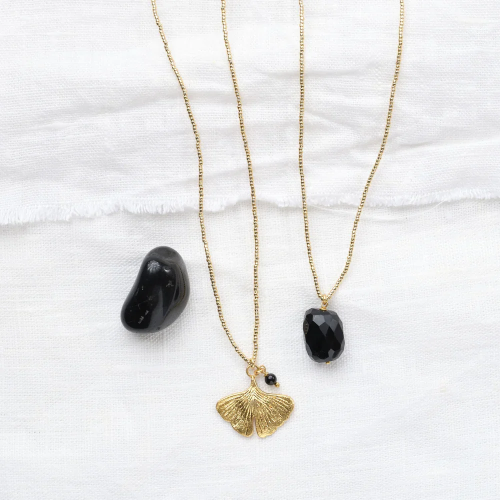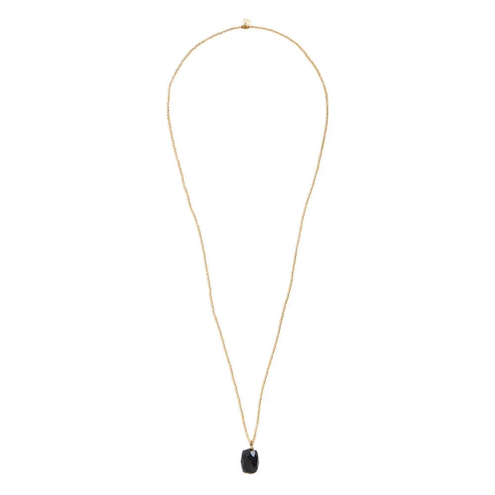 Ontdek de Calm Zwarte Onyx Goudkleurige Ketting van A Beautiful Story. Deze prachtige ketting is één van onze classics. De handgemaakte ketting bestaat uit glaskralen, verguld messing en een grote zwarte onyx edelsteen. Met een lengte van 62 centimeter past de ketting mooi bij iedereen.