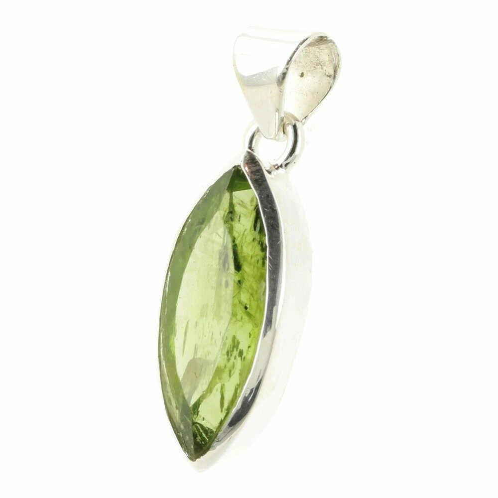 Prachtige heldergroene peridoot hanger in zilver facet geslepen. Deze fraaie facet geslepen peridoot is gevat in juwelierskwaliteit 925 sterling zilver, een echte eye-catcher. De frisse kleur groen schittert je tegemoet. De afmeting van deze grote peridoot steen in de hanger is 25mm hoog en 11mm breed. Je ontvangt de fraaie peridoot hanger van de foto.