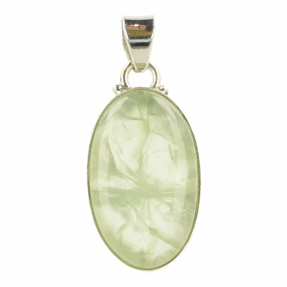 Mooie helder groene prehniet hanger in zilver ‘nr6’. Het zilver is van juwelierskwaliteit 925 sterling zilver. De afmeting van de prehniet steen in de hanger is ongeveer 27mm hoog en 16mm breed. Je ontvangt de prehniet hanger in zilver van de foto.