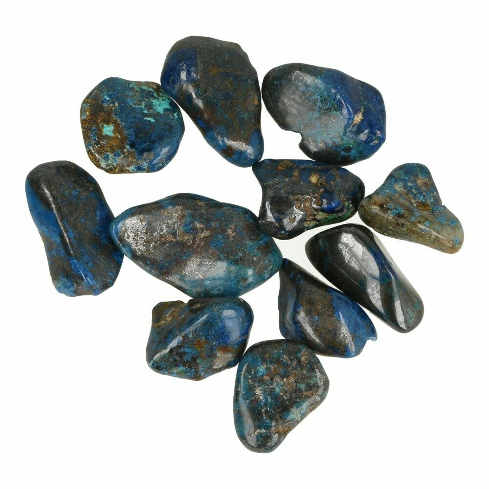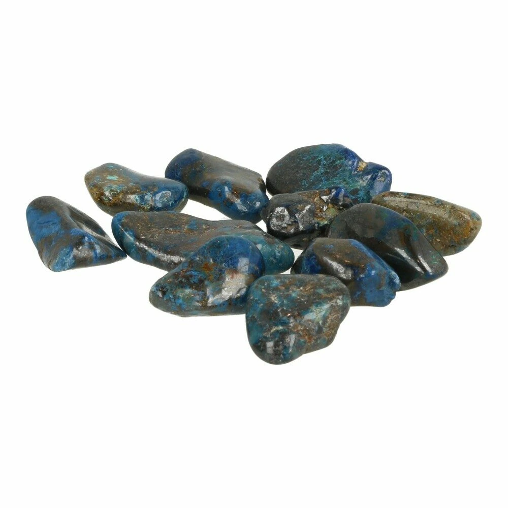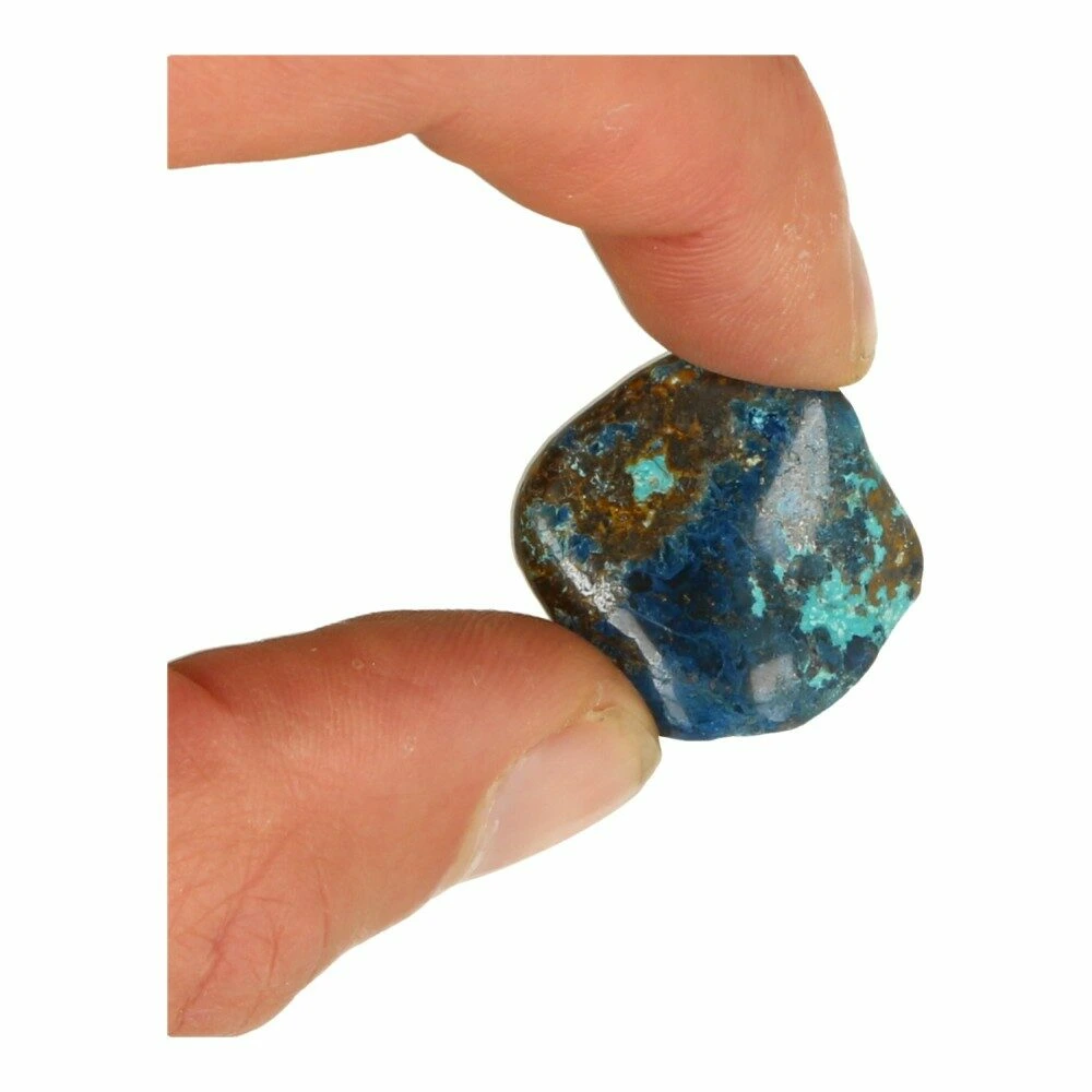 Quantum quattro is een bijzondere combinatiesteen van chrysocolla, malachiet, shattuckiet en dioptaas in kwarts. Ieder stuk is uniek, een kunstwerkje op zichzelf. De afmeting van de quantum quattro trommelsteen varieert en is ongeveer 1,5-2 cm breed en 2-3 cm lang.