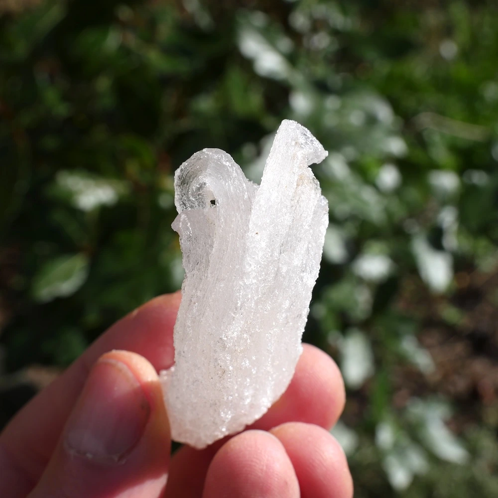 Hoewel de vorm anders is dan bij de standaard tabulaire kristallen, noemen we dit mineraal op onze website gewoon seleniet, omdat het energetisch dezelfde eigenschappen heeft.