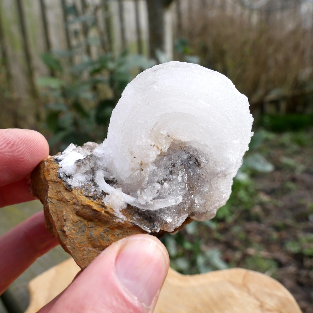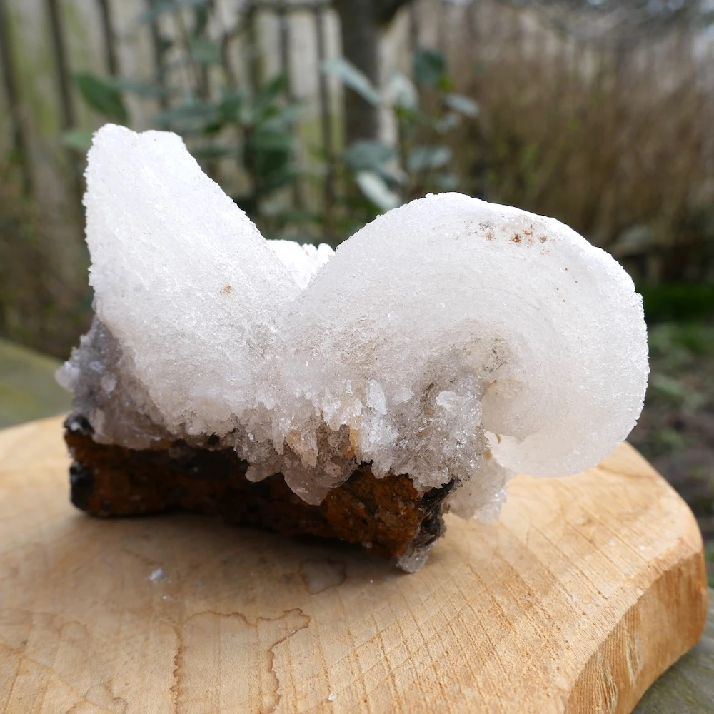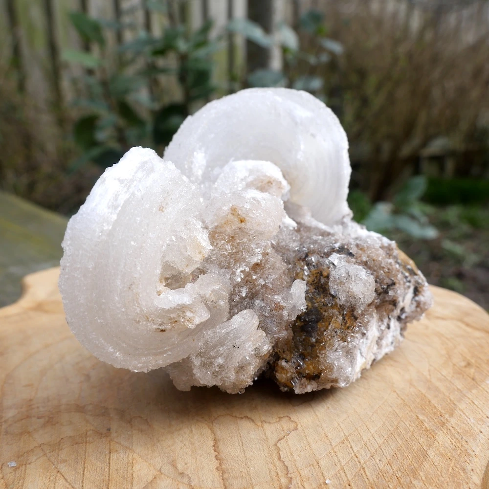 Ramshoorn seleniet is een bijzondere vorm van seleniet, herkenbaar aan zijn spiraal- of krulvormige structuur die doet denken aan een ramshoorn. Het is een gehydrateerd calciumsulfaat met een hardheid van 2, en net als gewone seleniet een helder tot wit mineraal. Ramshoorn seleniet vormt zich vaak in kleine afzettingen in grotten of op kalkrijke bodemlagen, en kan insluitsels van lucht of water bevatten. De unieke spiraalvorm maakt deze selenietvariant bijzonder krachtig voor energetisch werk. De kleur van ramshoorn seleniet is meestal wit of transparant met een zachte glans. Belangrijke vindplaatsen zijn Mexico, Marokko en de Verenigde Staten.