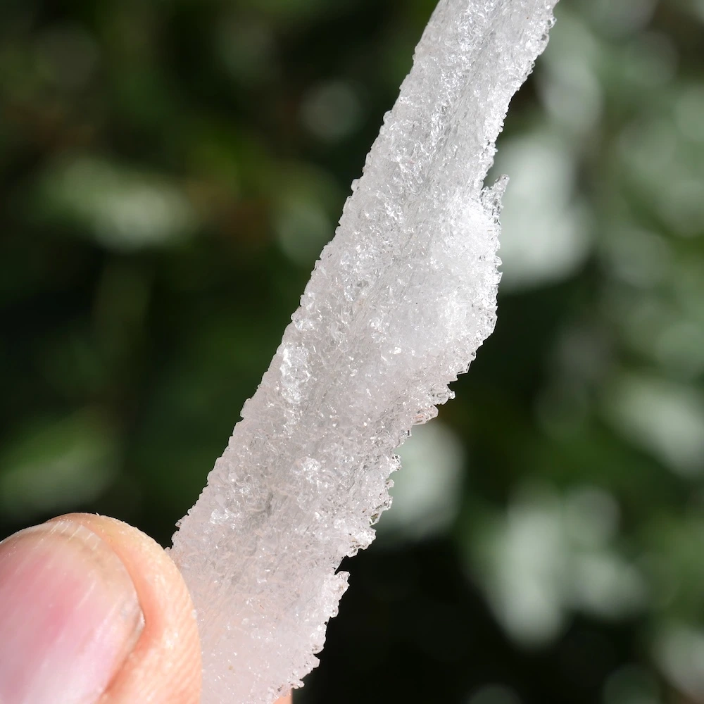 Hoewel de vorm anders is dan bij de standaard tabulaire kristallen, noemen we dit mineraal op onze website gewoon seleniet, omdat het energetisch dezelfde eigenschappen heeft.