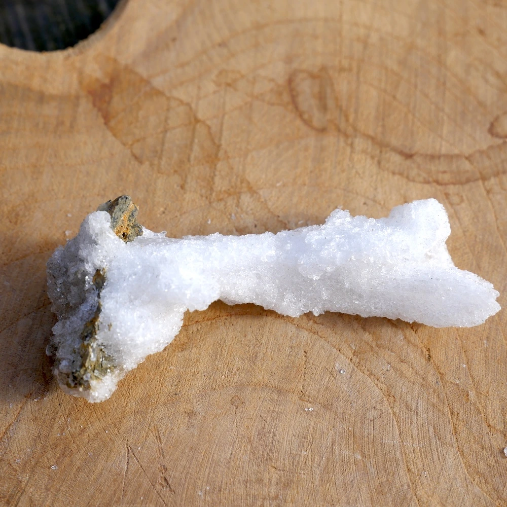 Hoewel de vorm anders is dan bij de standaard tabulaire kristallen, noemen we dit mineraal op onze website gewoon seleniet, omdat het energetisch dezelfde eigenschappen heeft.
