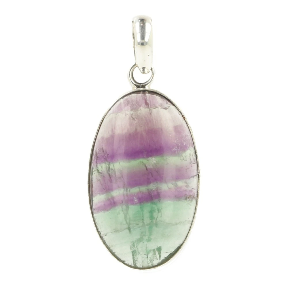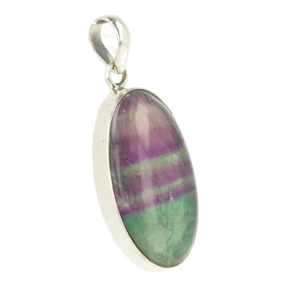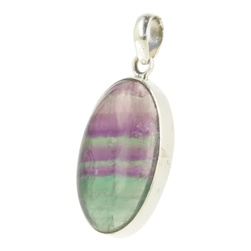 Prachtige regenboog fluoriet hanger in zilver ‘nr5’. De fraaie regenboog fluoriet is gevat in juwelierskwaliteit zilver van 925 sterling. De fluoriet in de hanger is 3,2cm hoog en 1,9cm breed. Je ontvangt de regenboog fluoriet hanger in zilver van de foto.